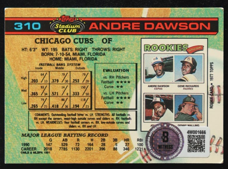 Andre Dawson Signed 1991 Stadium Club #310 (Beckett)