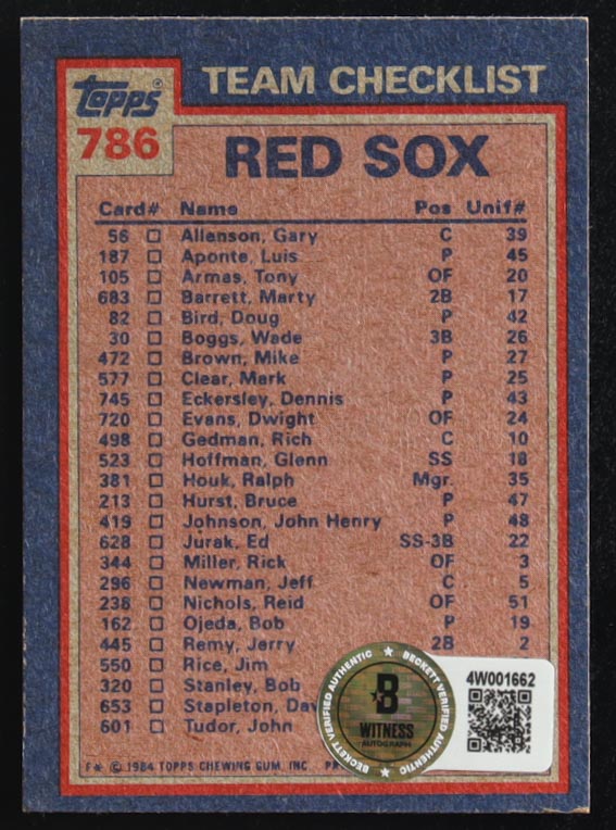 Wade Boggs Signed 1984 Topps #786 Red Sox TL (Beckett)