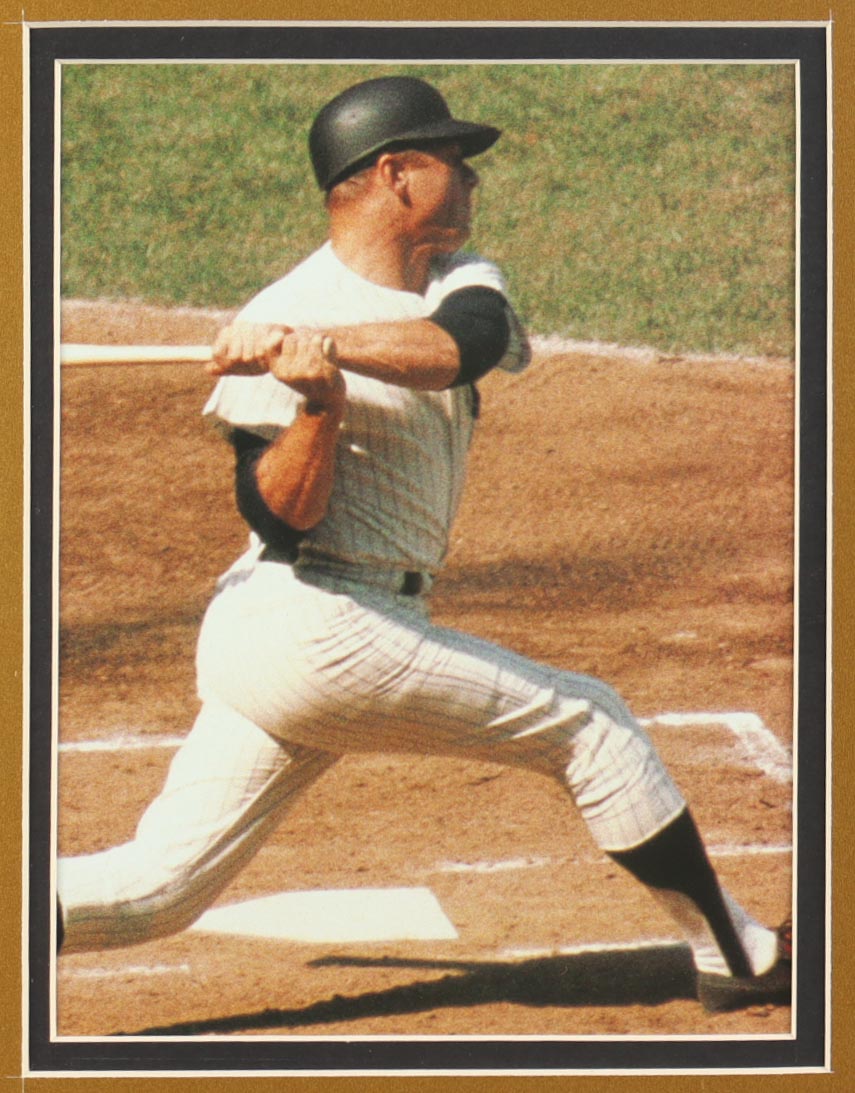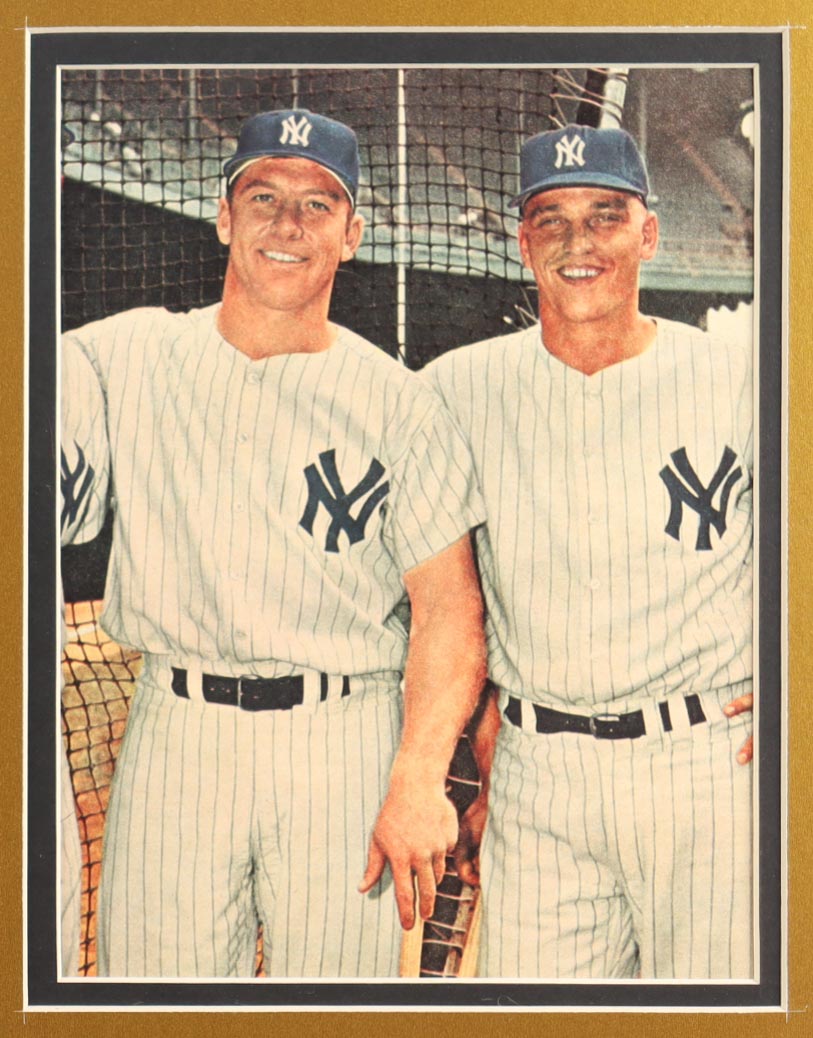 Custom frame display measures approximately 32" x 36" in size and features a jersey and a cut that has been hand-signed by Mickey Mantle (D. 1995, New York Yankees, HOF). The display also includes an All-Star game Pin and (2) 8" x 10" photos and (2) cloth team logo patches.