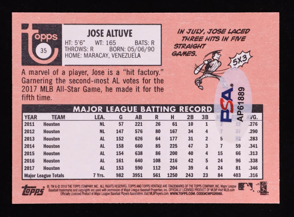 Jose Altuve Signed 2018 Topps Heritage #35 (PSA)