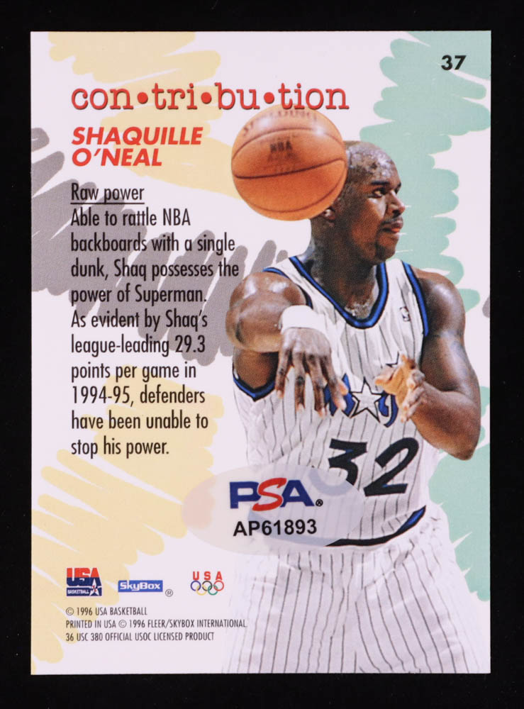Shaquille O'Neal Signed 1996 SkyBox USA #37 (PSA)