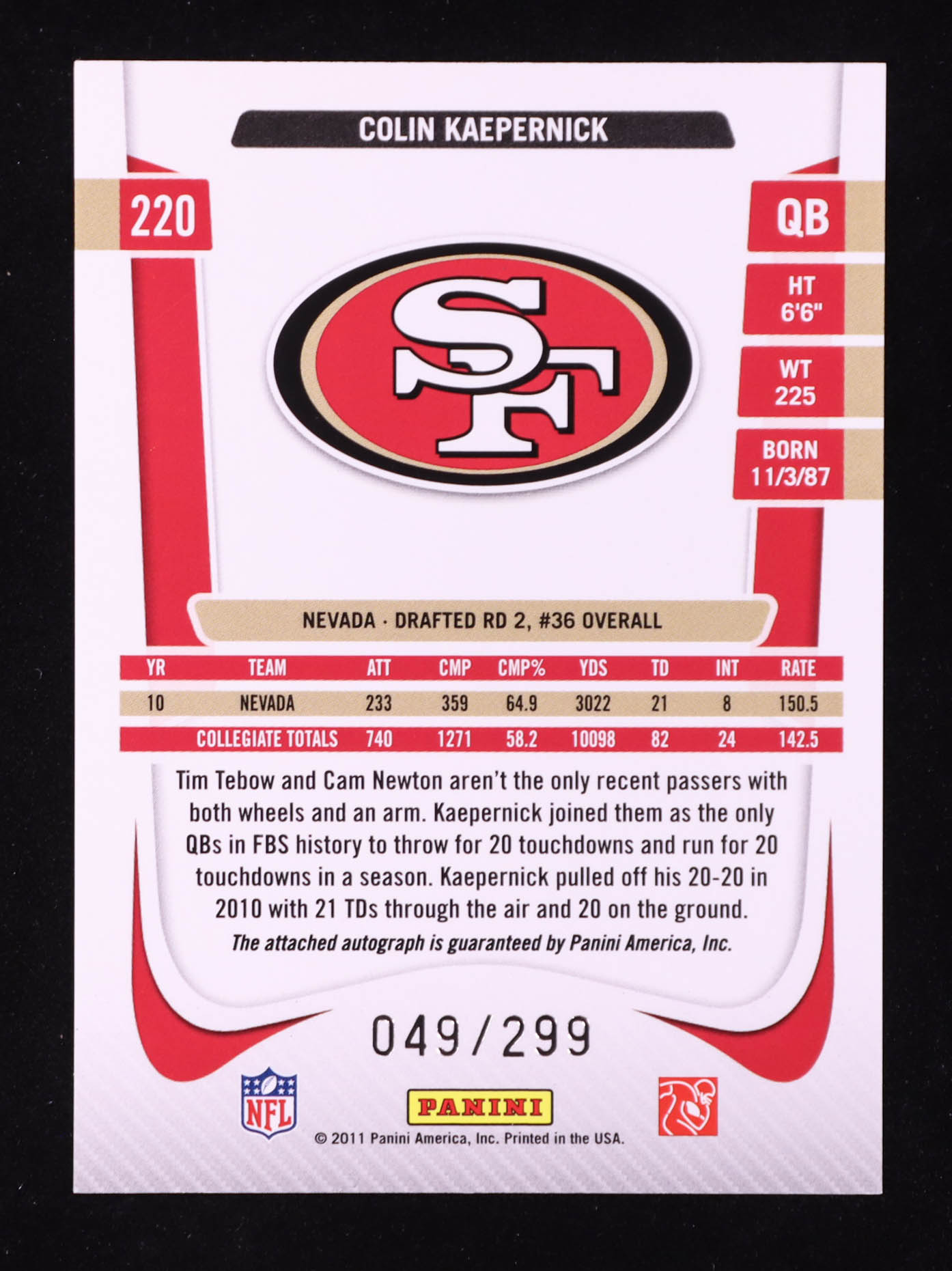 Colin Kaepernick 2011 Prestige Draft Picks Rights Autographs #220 #049/299 RC