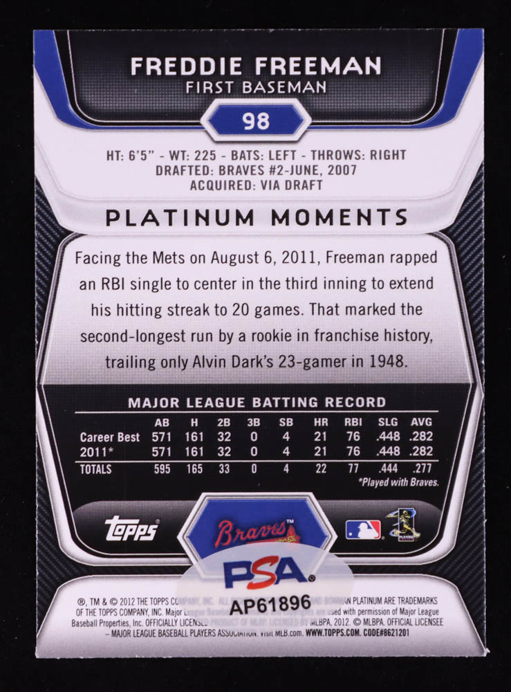 Freddie Freeman Signed 2012 Bowman Platinum #98 (PSA)
