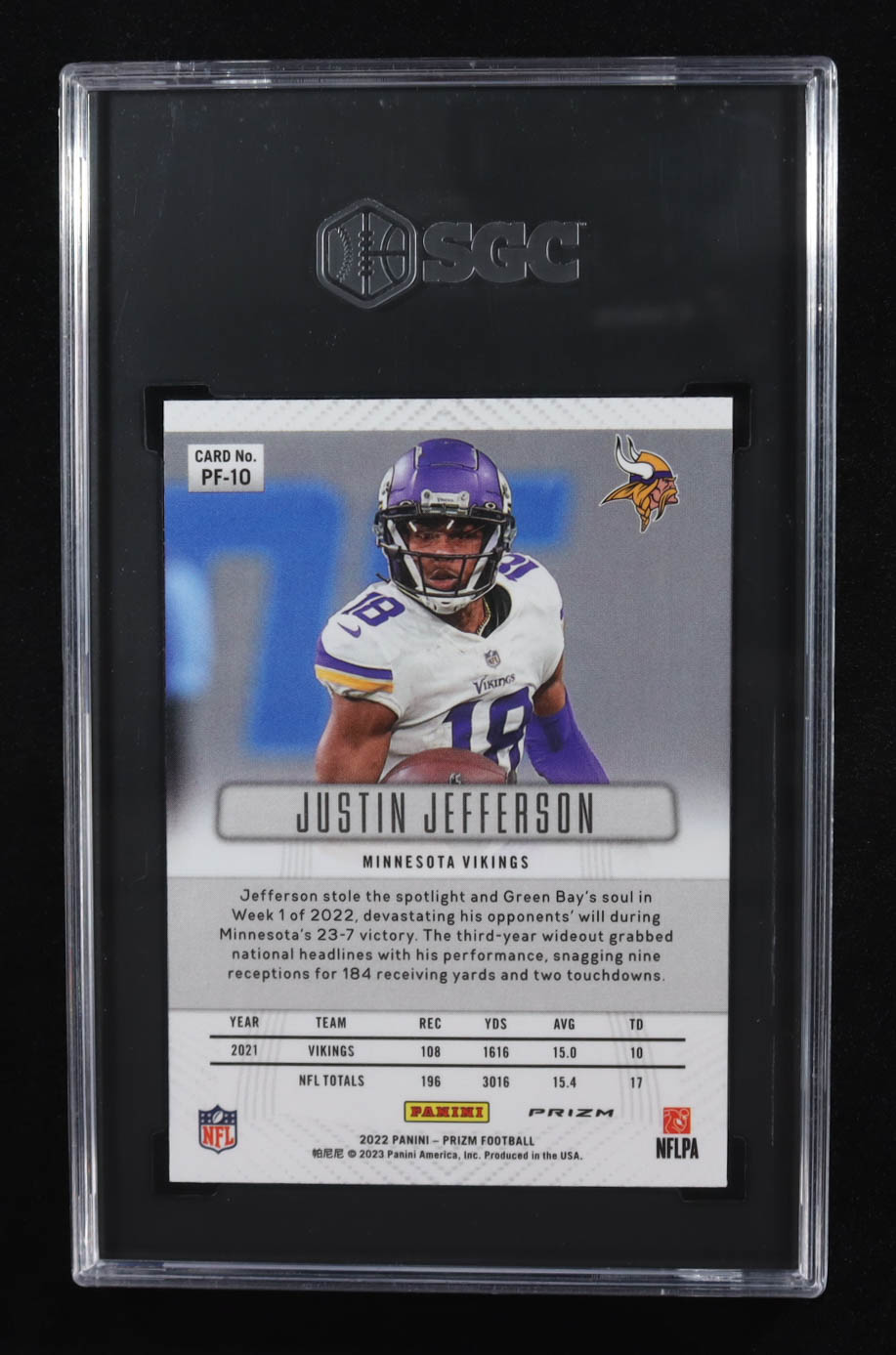 Justin Jefferson 2022 Panini Prizm Prizm Flashback Prizms No Huddle #10 (SGC 9.5)