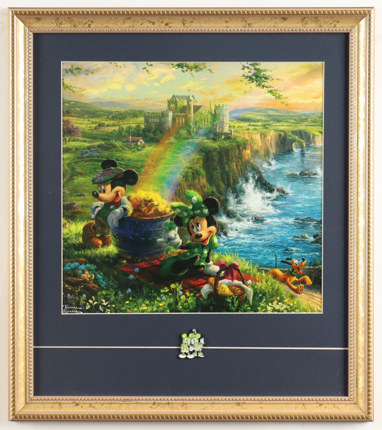 Thomas Kinkade "Mickey & Minnie Mouse In Ireland" Custom Framed Print Display with Mickey & Minnie Mouse Pin