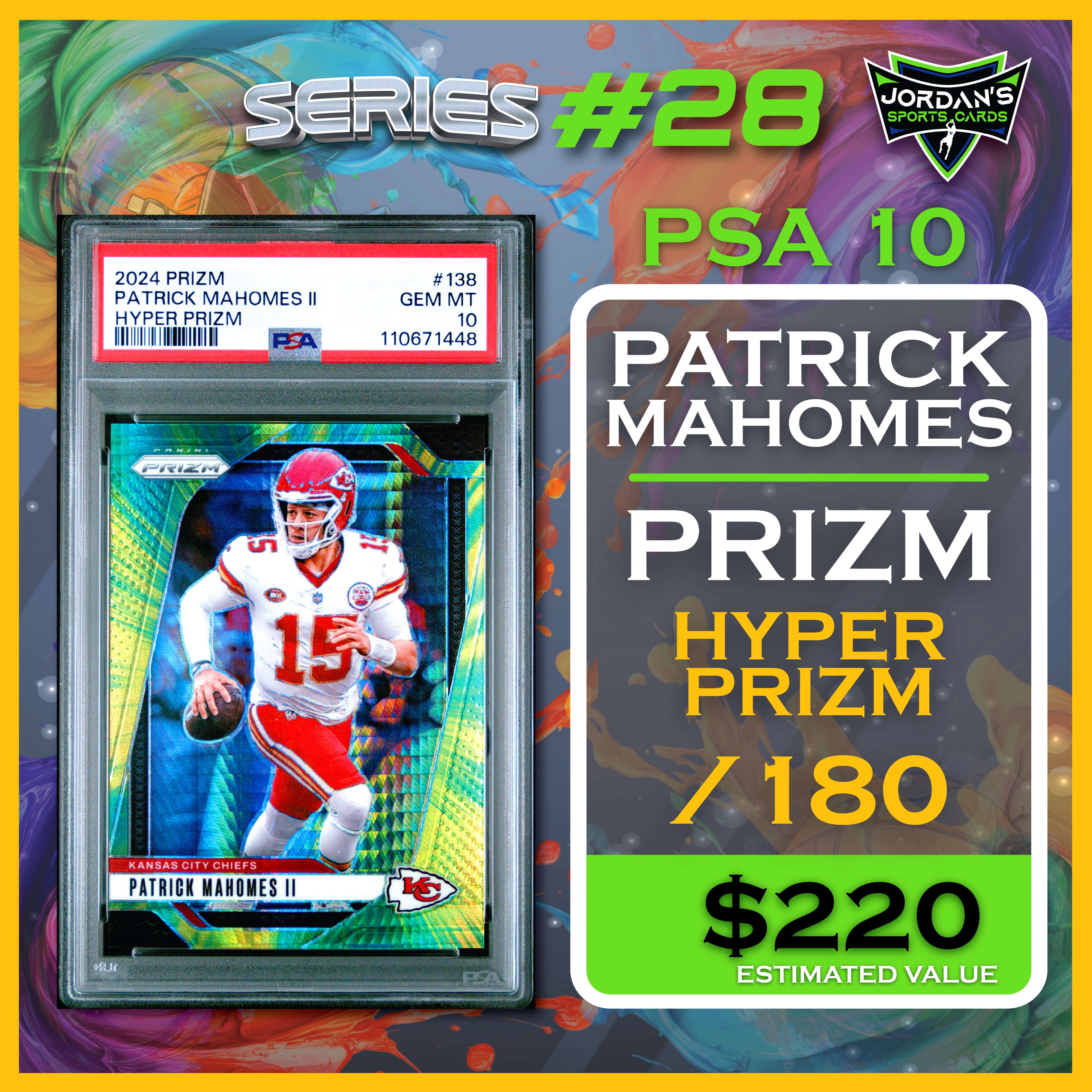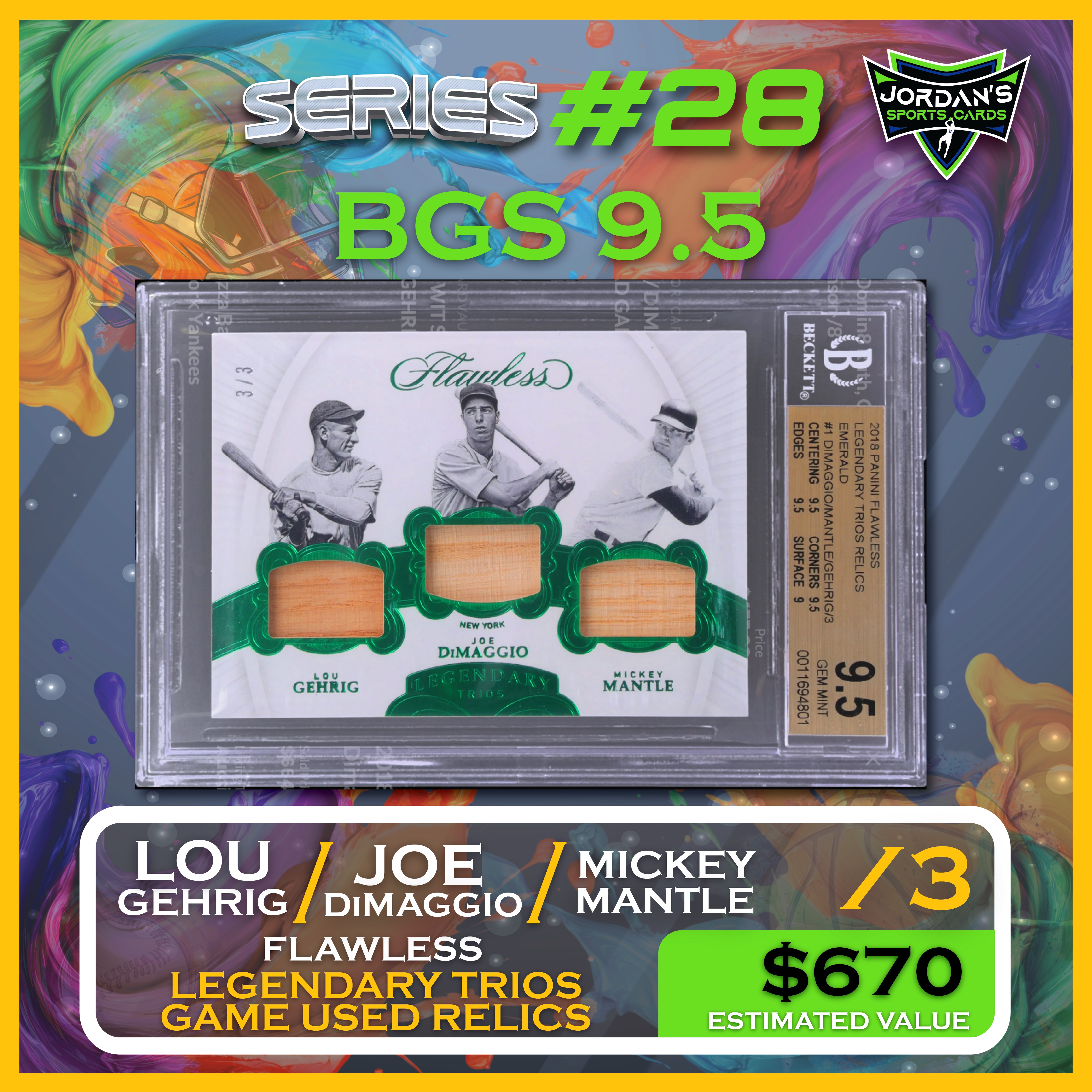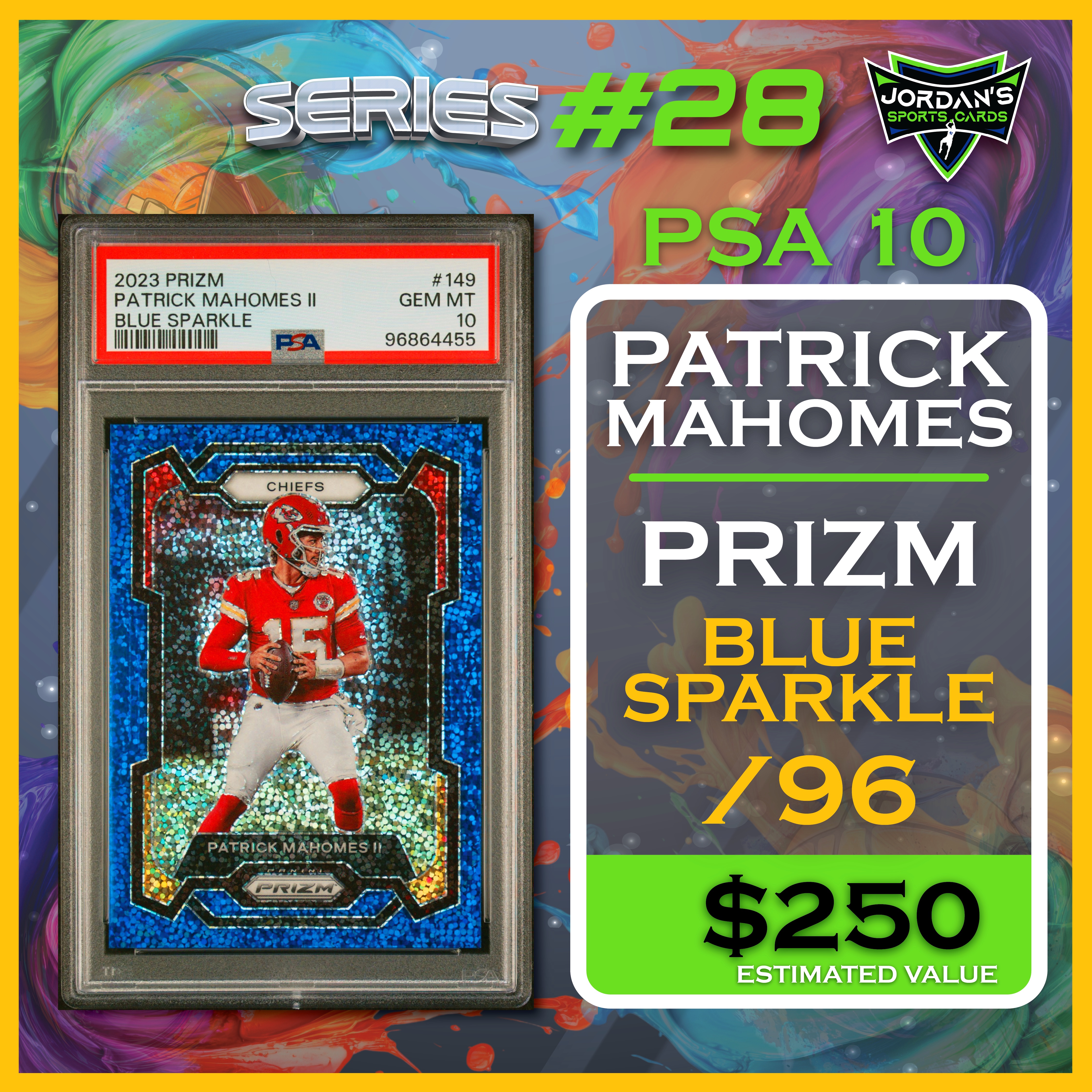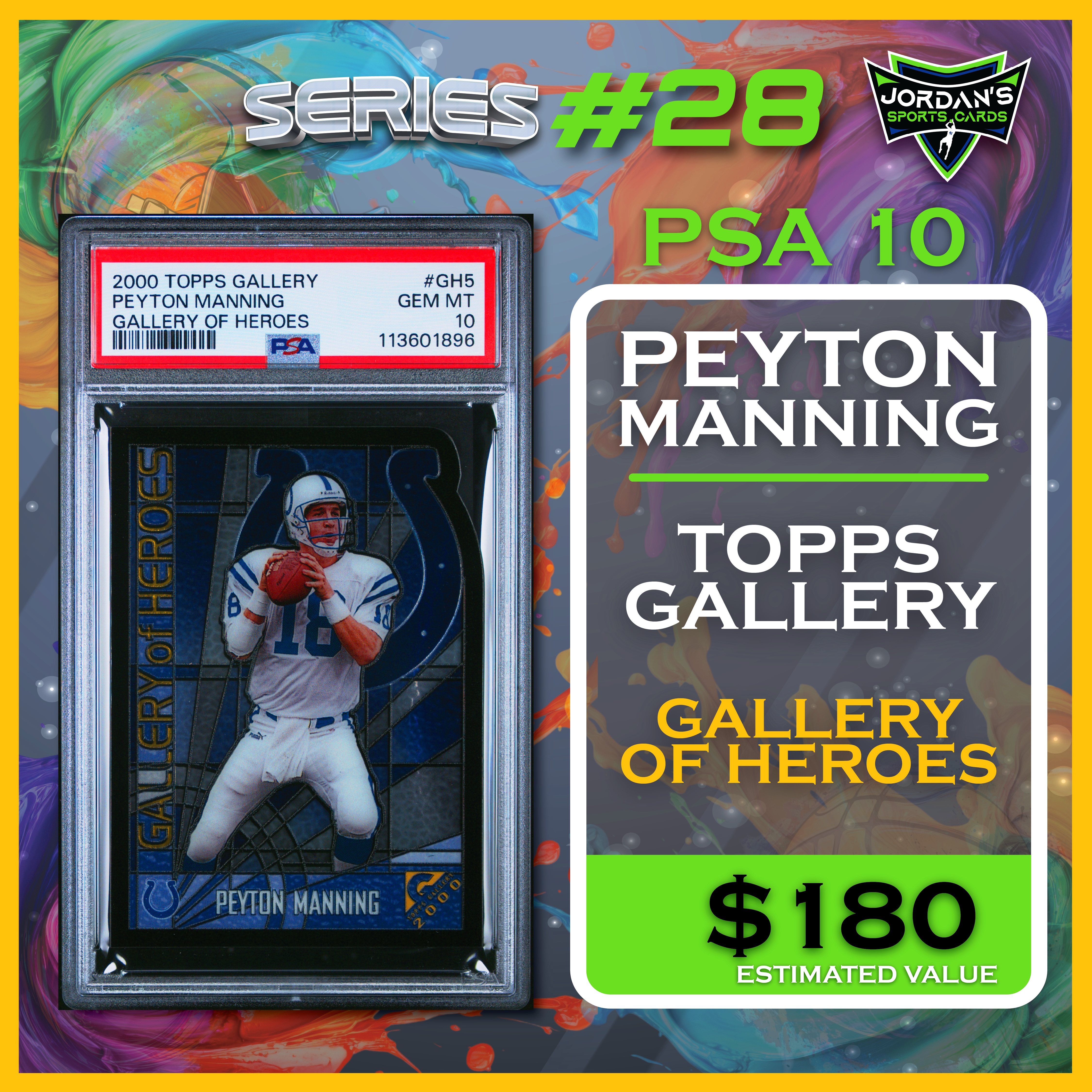Jordan’s Sports Cards Presents Platinum Quest Series 28: The Sports Card Pack Mystery Pack with (1) PSA or BGS graded baseball, basketball, or football card, including big hits from superstars and hall of famers across all three major sports (600 cards total).