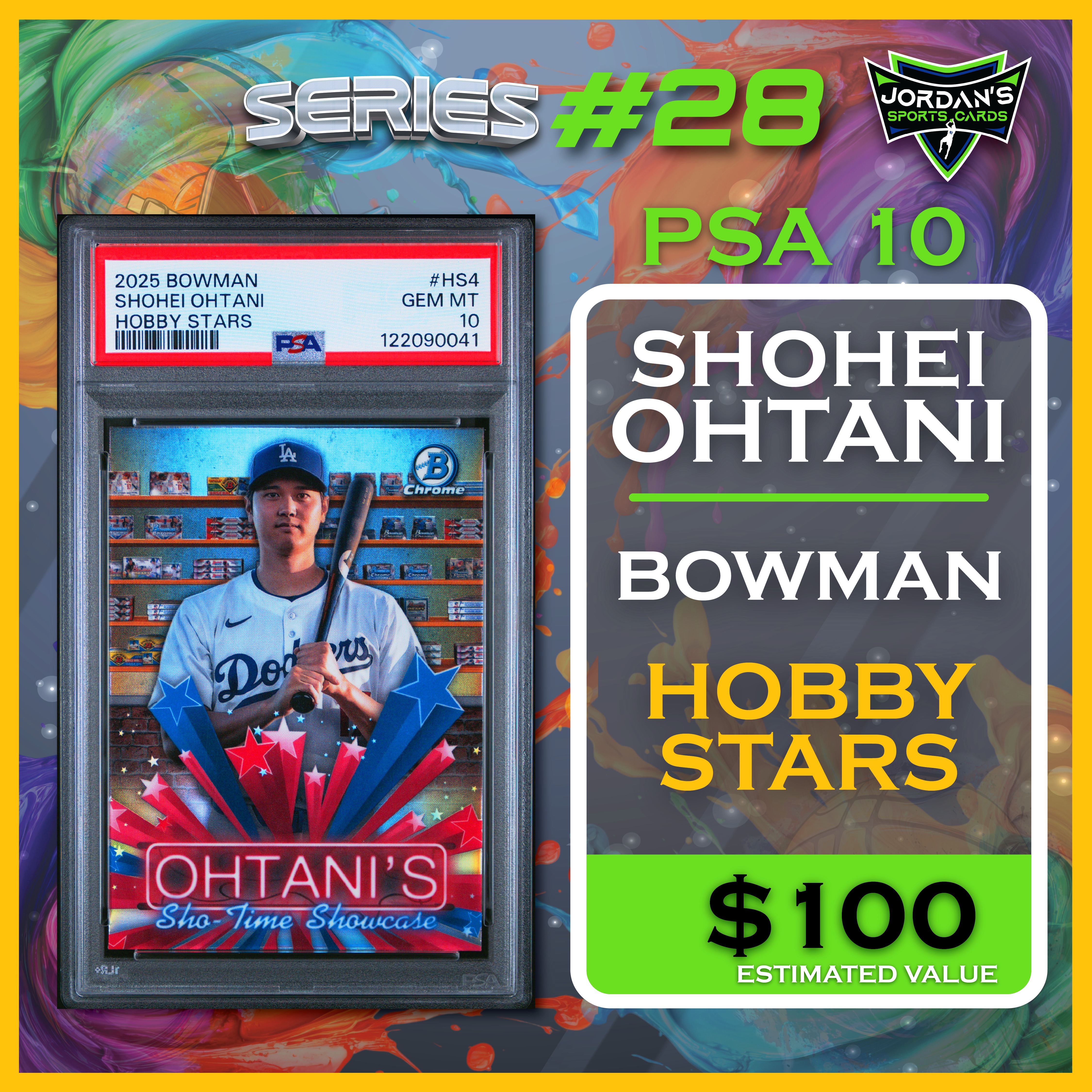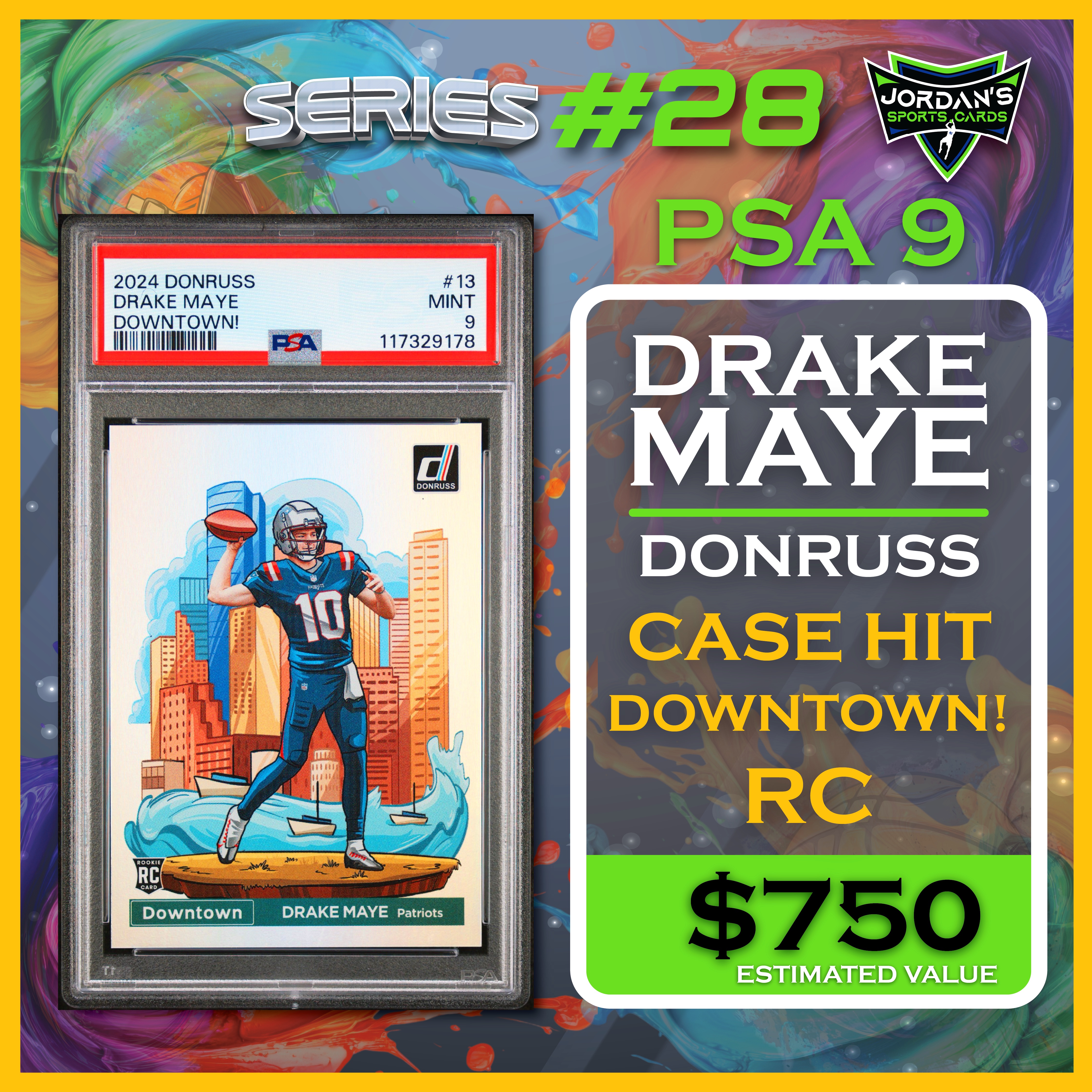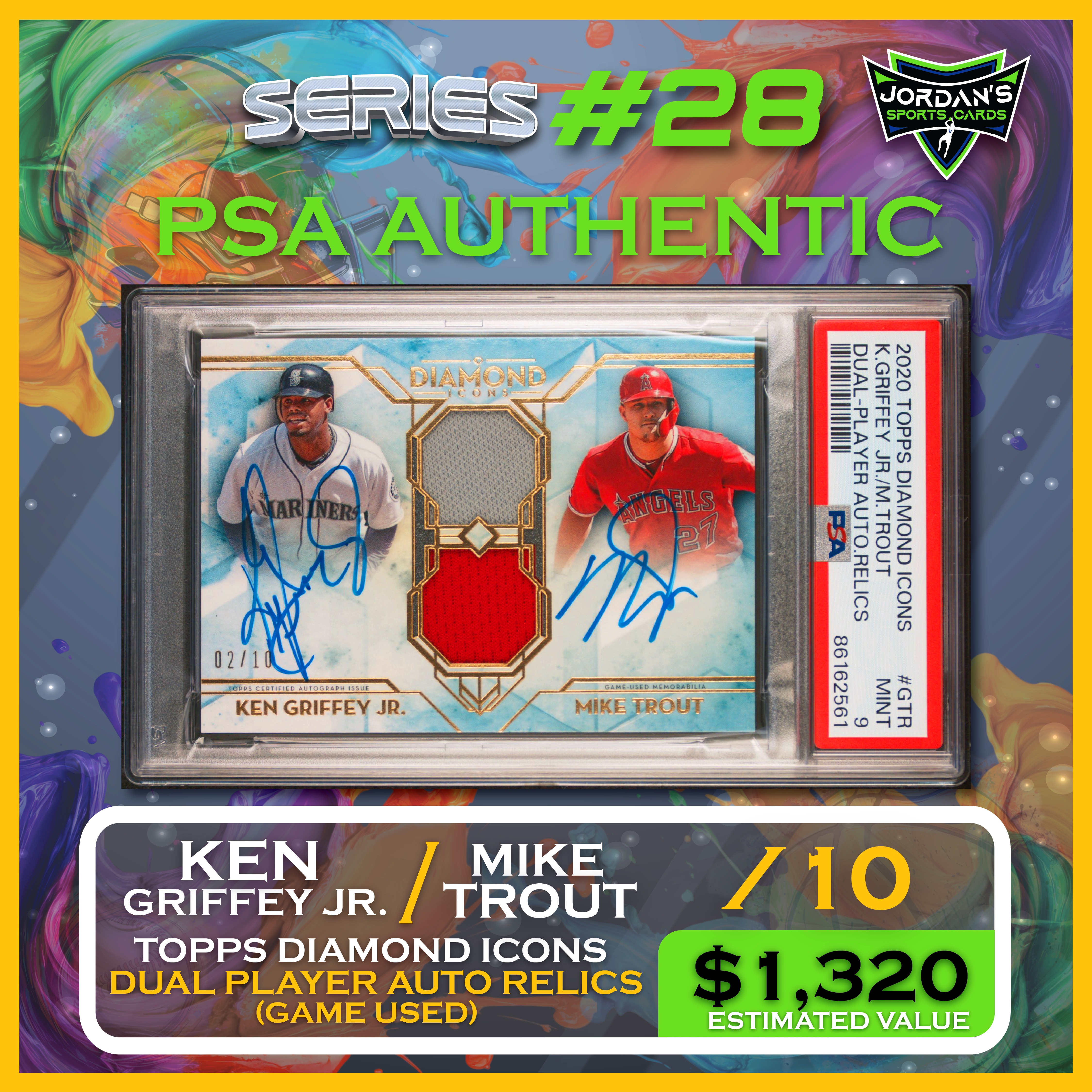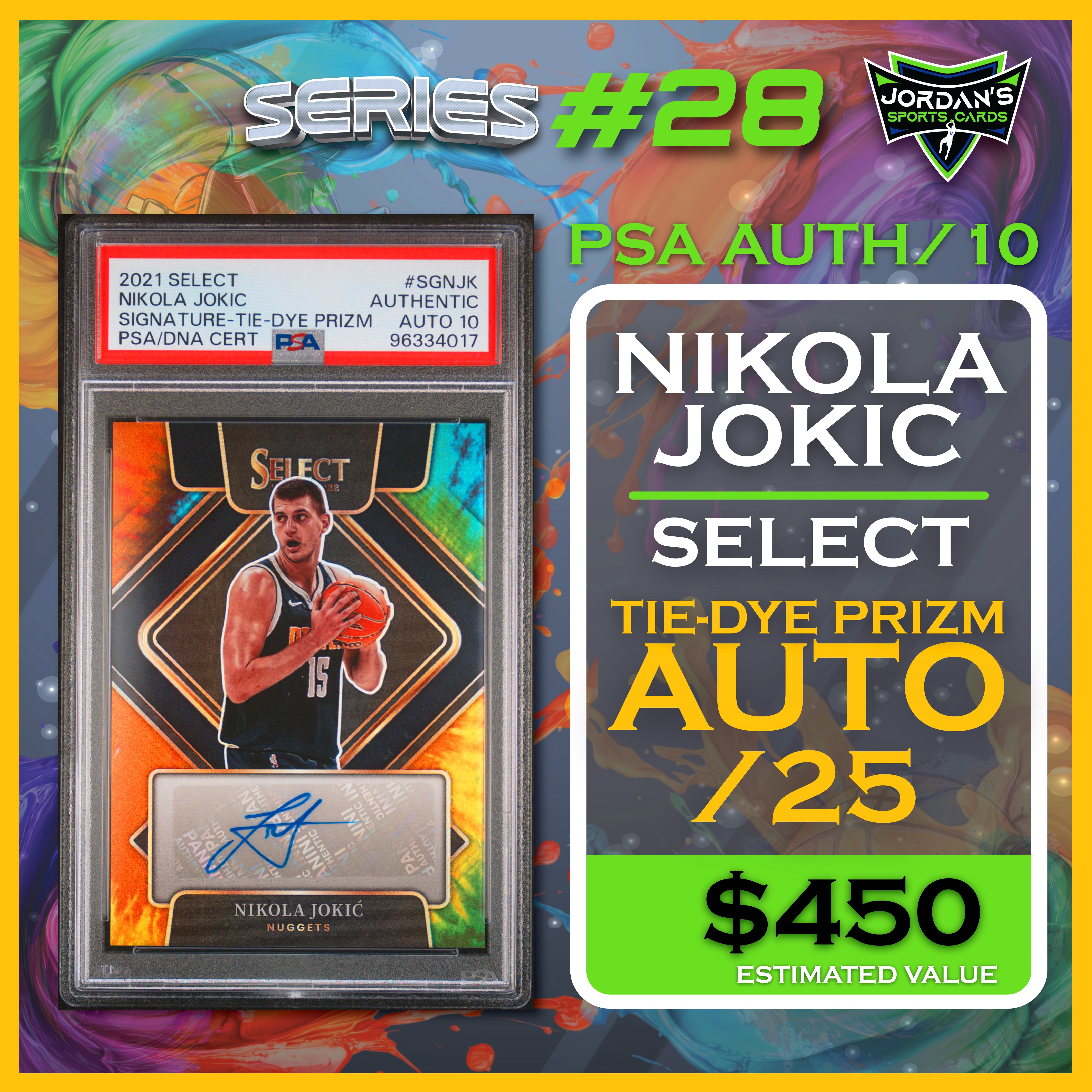 Jordan’s Sports Cards Presents Platinum Quest Series 28: The Sports Card Pack Mystery Pack with (1) PSA or BGS graded baseball, basketball, or football card, including big hits from superstars and hall of famers across all three major sports (600 cards total).