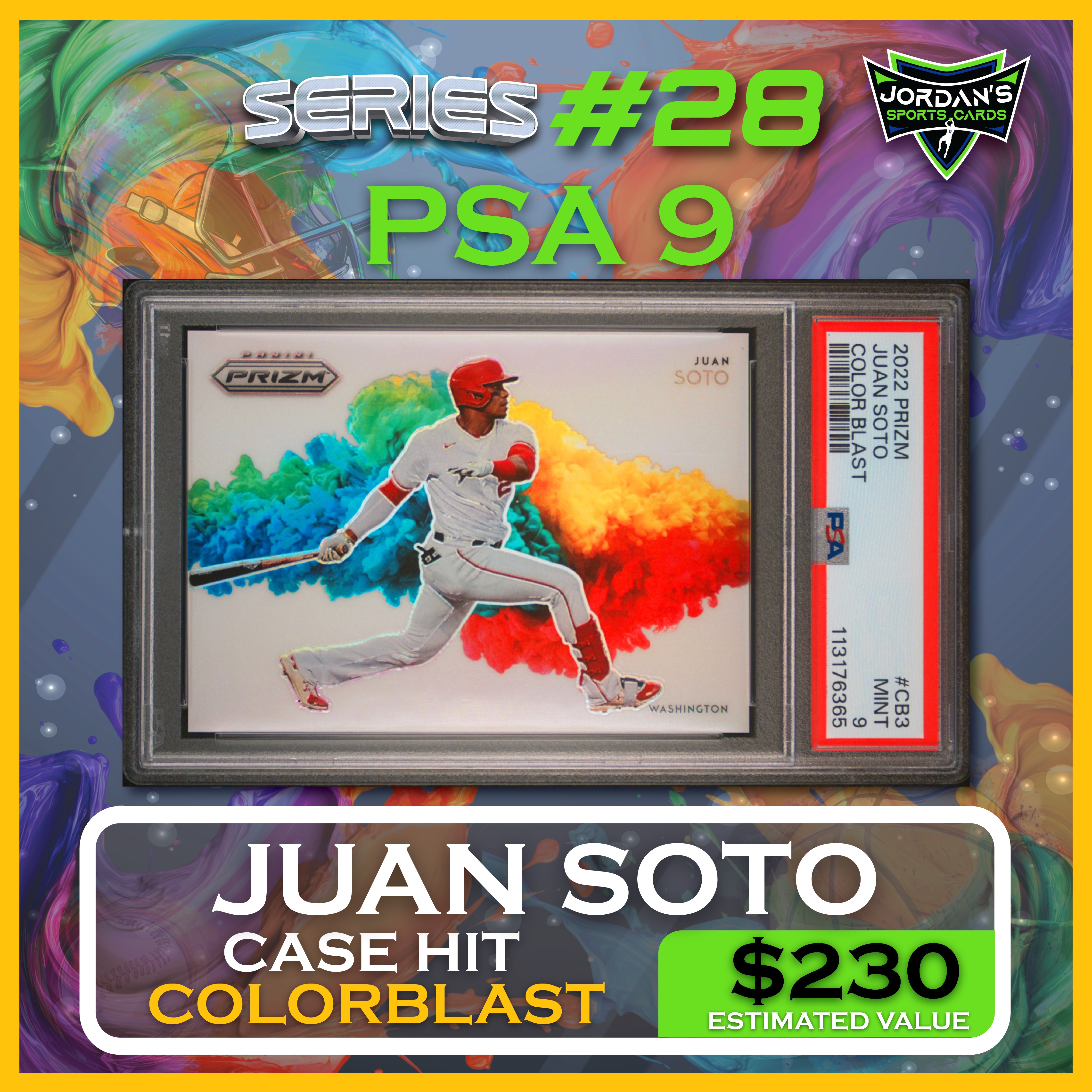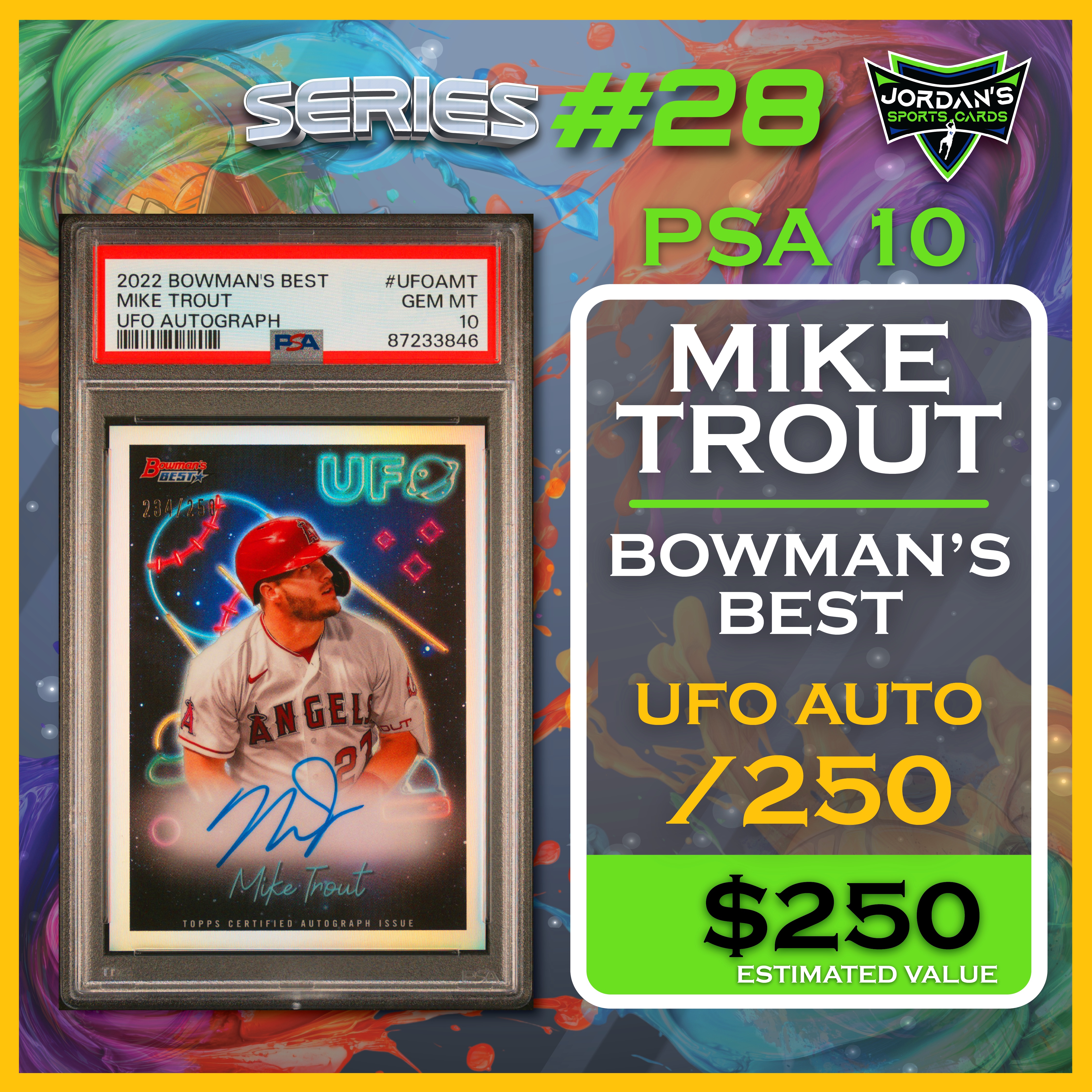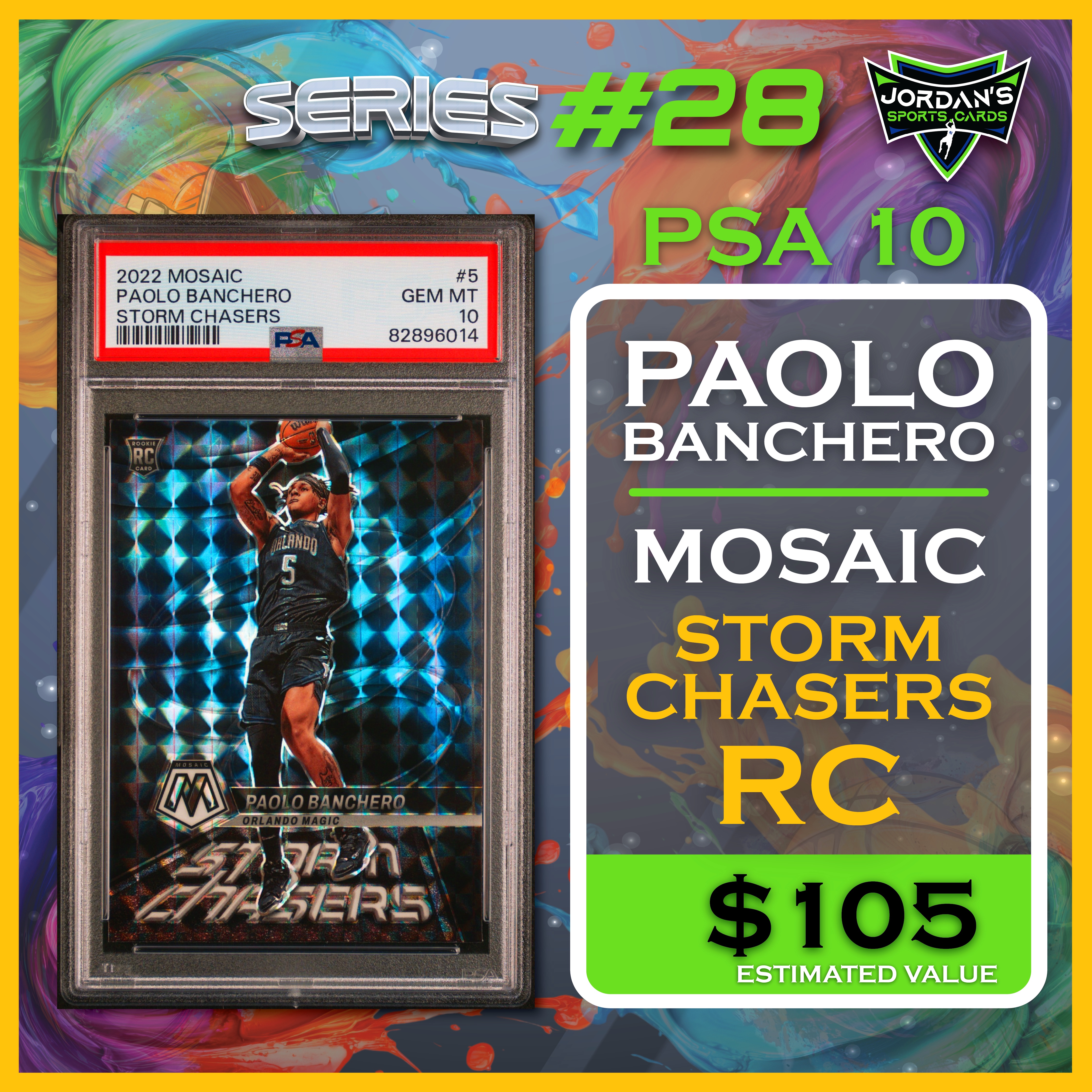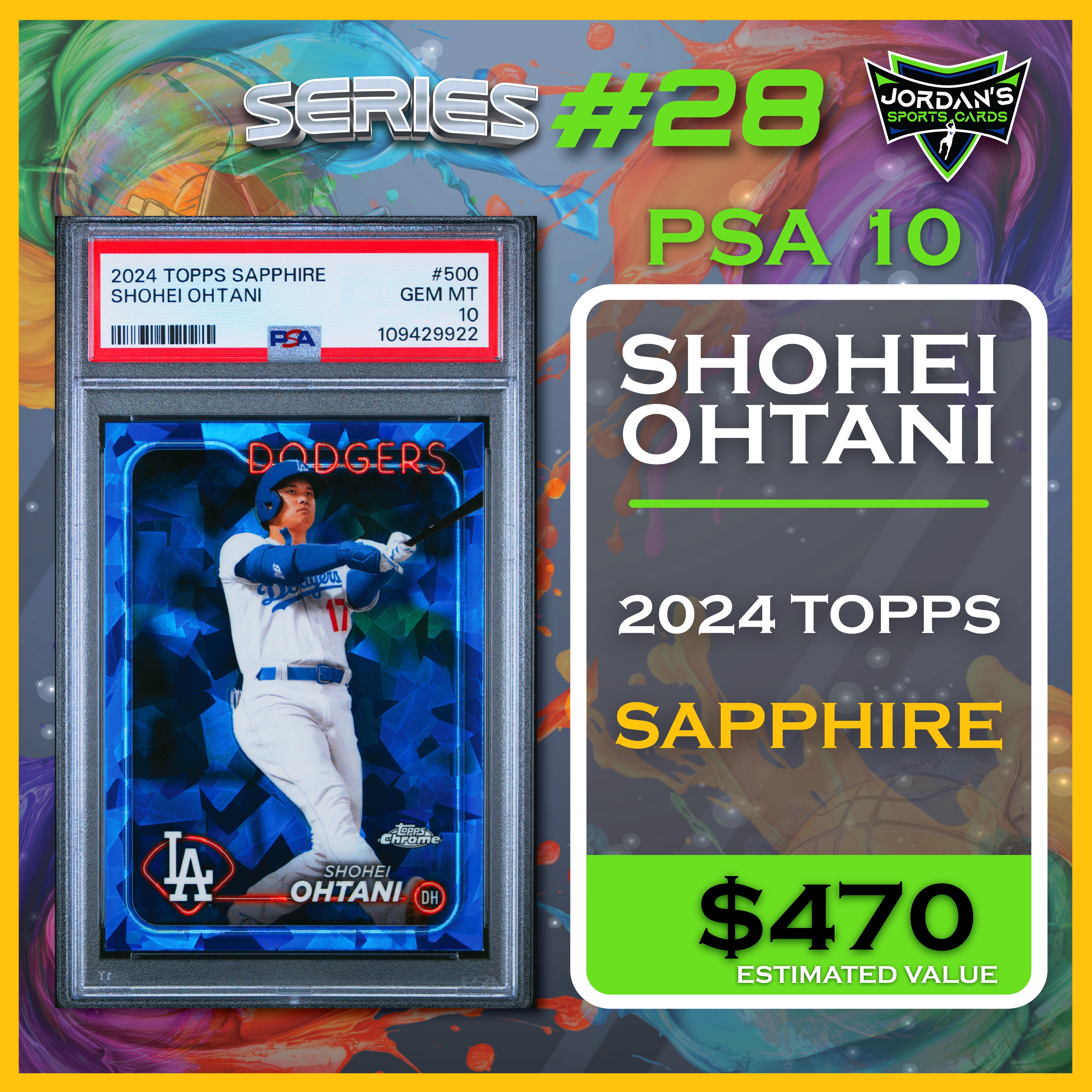 Jordan’s Sports Cards Presents Platinum Quest Series 28: The Sports Card Pack Mystery Pack with (1) PSA or BGS graded baseball, basketball, or football card, including big hits from superstars and hall of famers across all three major sports (600 cards total).