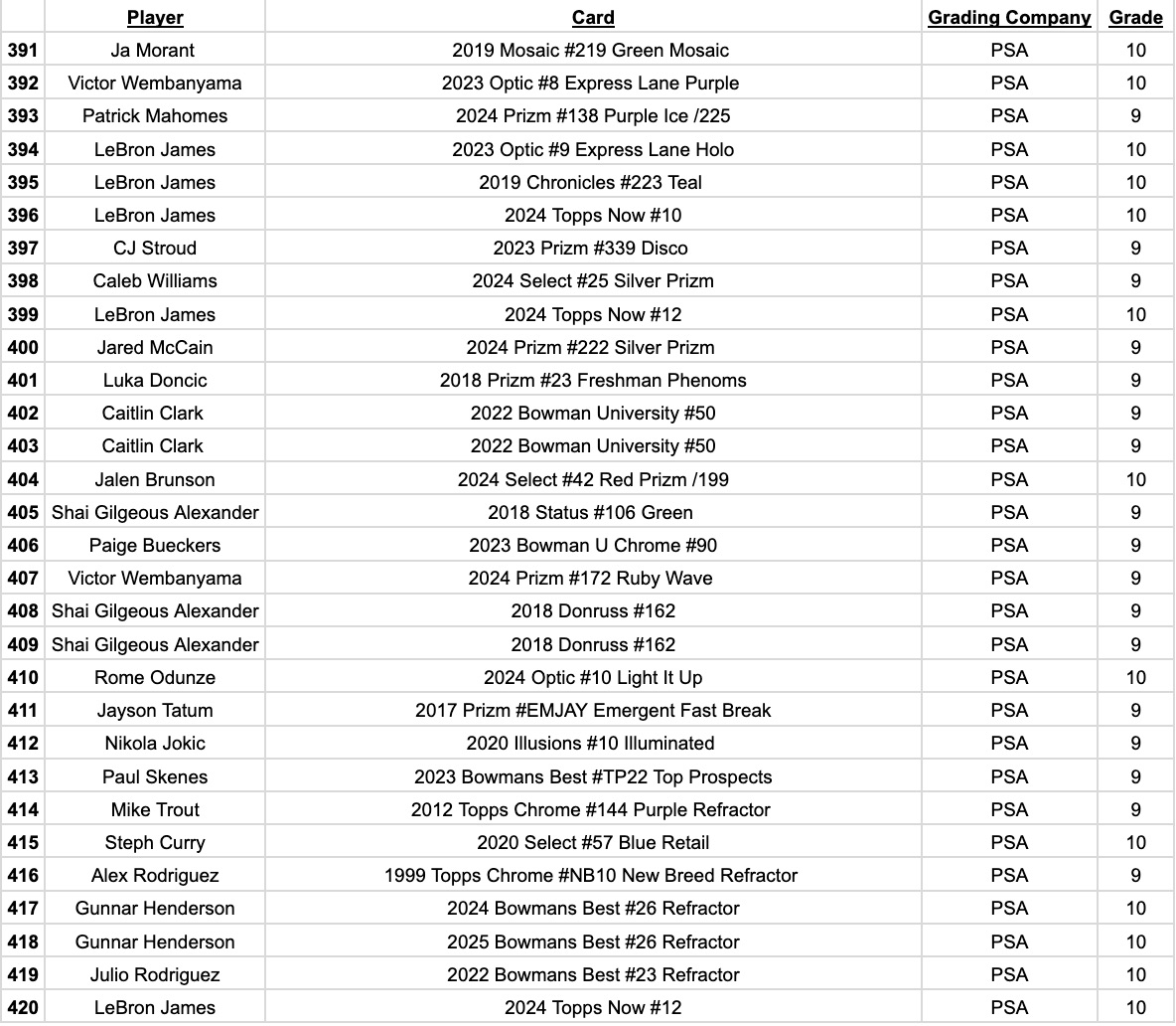 Cards to chase include Michael Jordan, Shohei Ohtani, Tom Brady, Patrick Mahomes, Kobe Bryant, LeBron James, Mickey Mantle, Josh Allen, Stephen Curry, Aaron Judge, Victor Wembanyama, Paul Skenes, Joe Burrow, Mike Trout, Kevin Durant, Allen Iverson, Luka Doncic, Ken Griffey Jr., Anthony Edwards, Jayson Tatum, Magic Johnson, Larry Bird, Peyton Manning, and more…