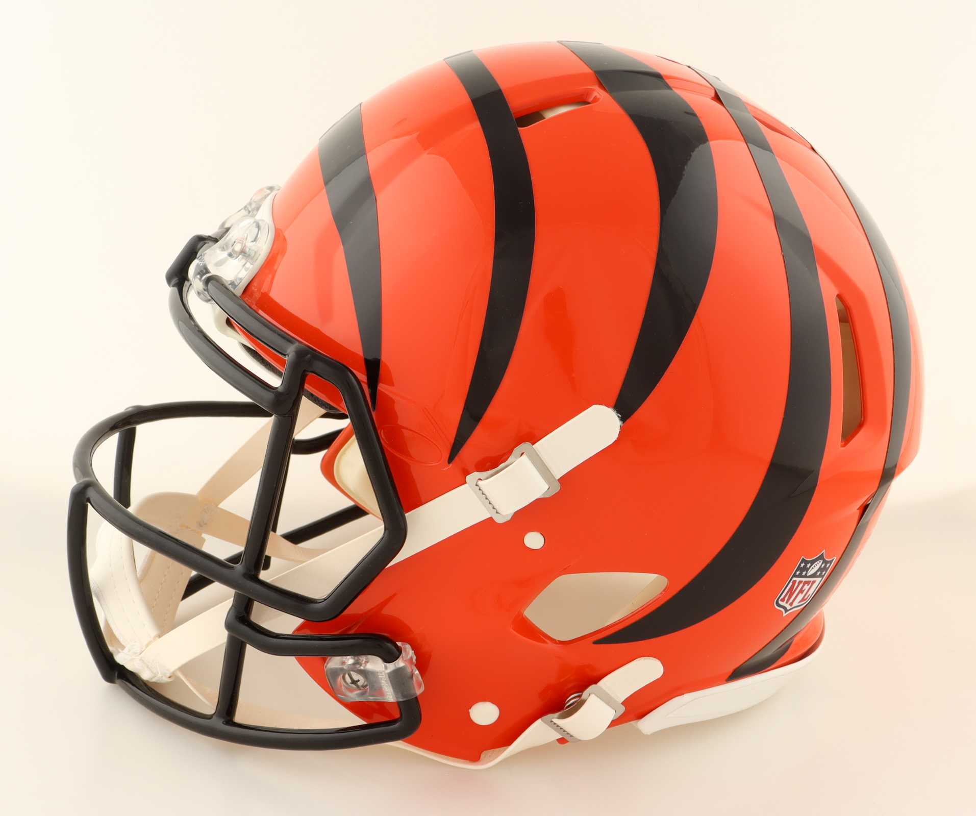Riddell Cincinnati Bengals full-size authentic on-field speed helmet has been hand-signed by Tee Higgins.