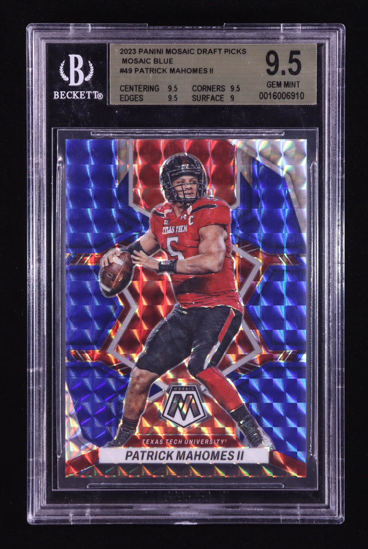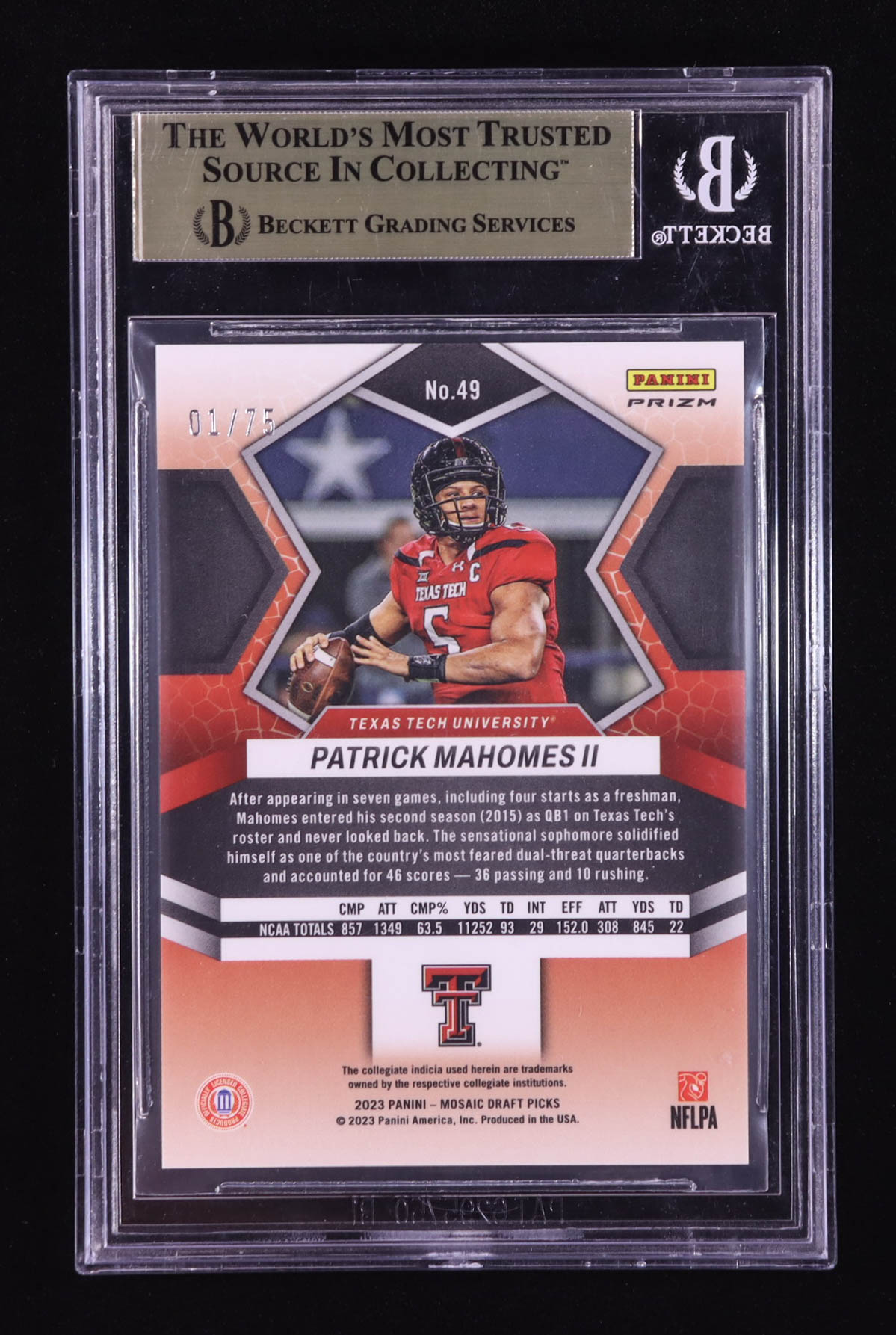 Patrick Mahomes II 2023 Panini Mosaic Draft Picks Mosaic Blue #49 #01/75 (BGS 9.5)