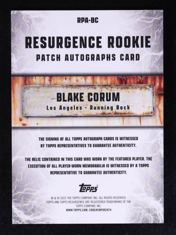 Blake Corum 2024 Topps Resurgence Resurgence Rookie Patch Autographs #RPABC RC