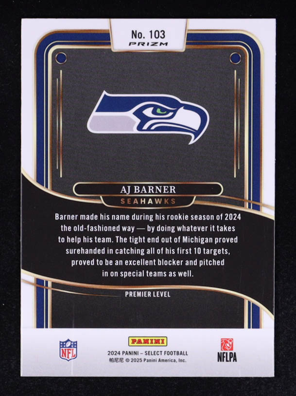 AJ Barner 2024 Select Prizm Zebra Shock #103 RC
