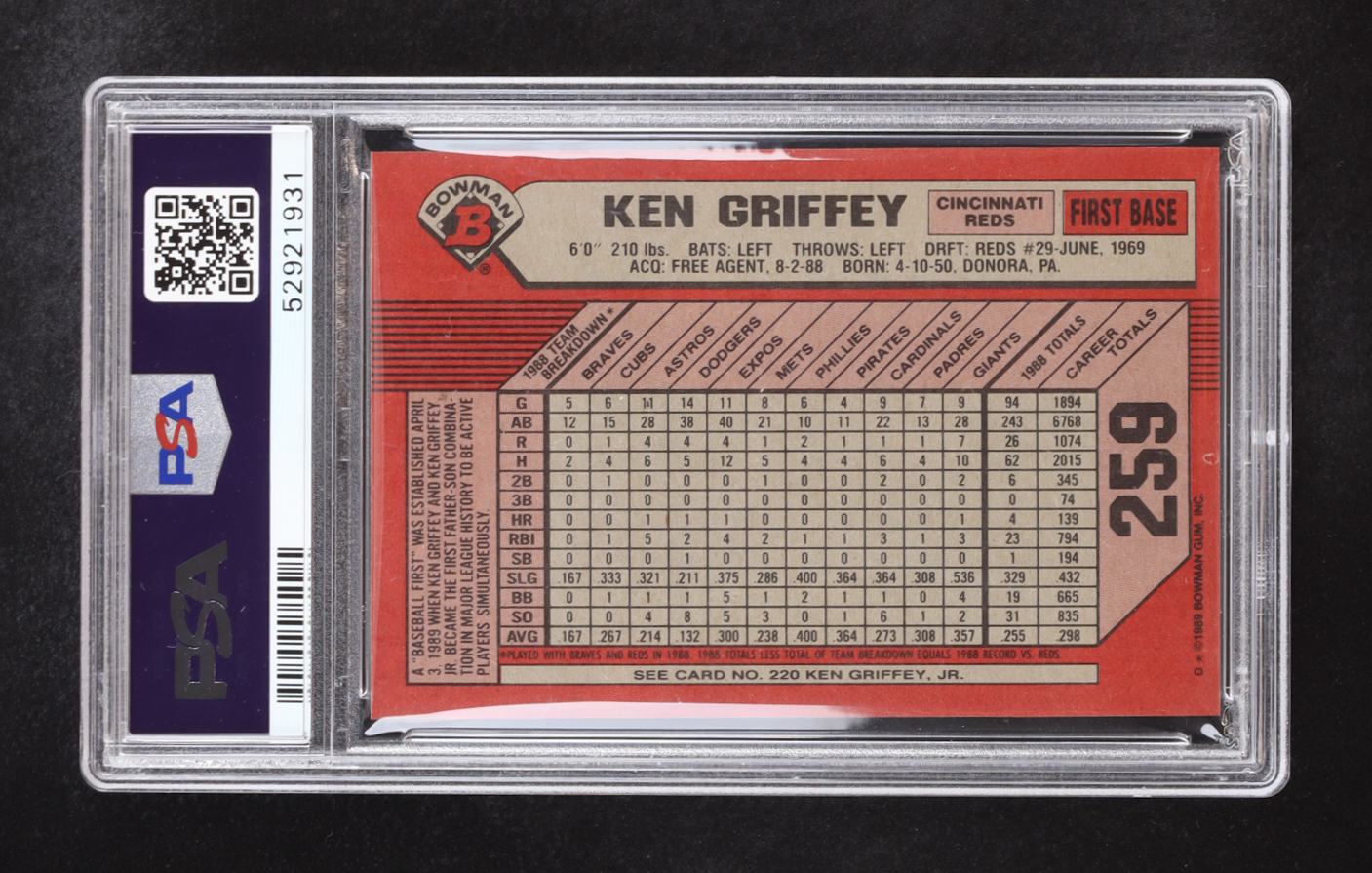 Ken Griffey 1989 Bowman #259 (PSA 9)