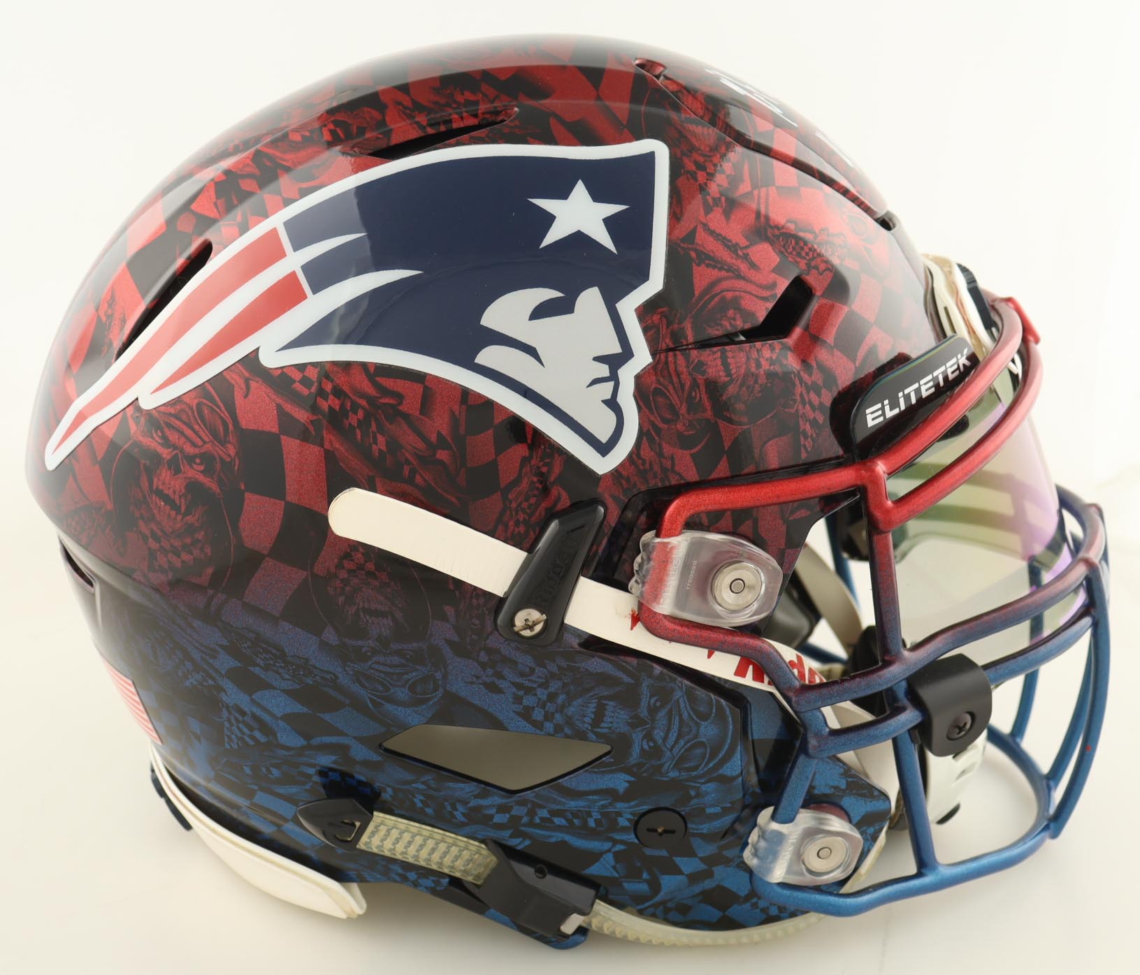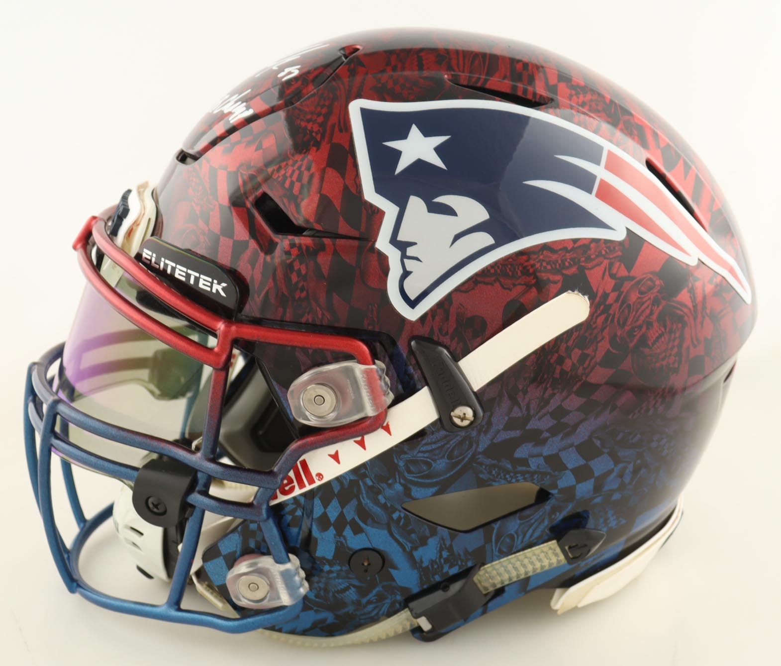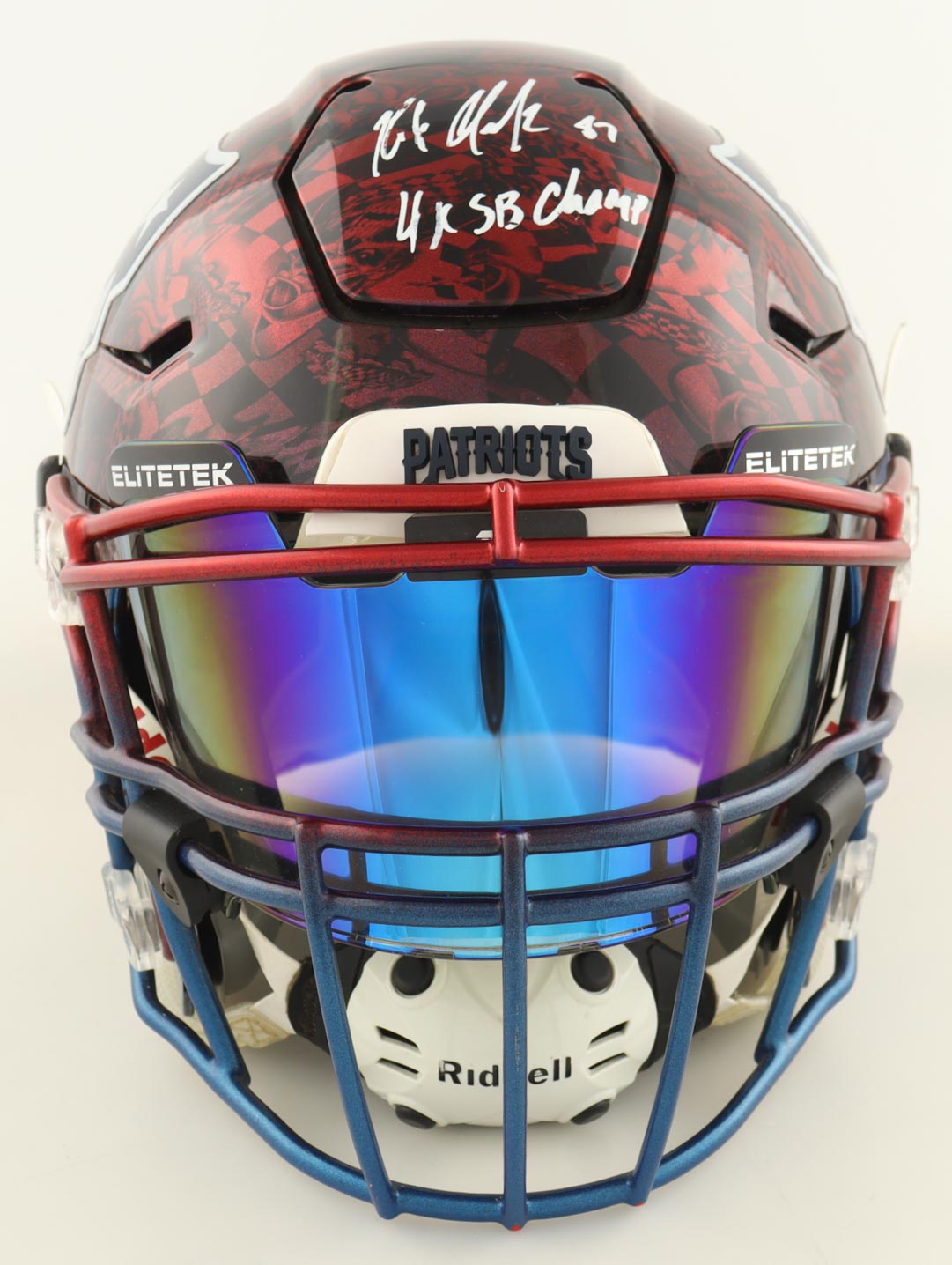 Riddell New England Patriots full-size authentic custom alternate on-field speed helmet with visor. Hand-signed and inscribed by Rob Gronkowski (New England Patriots).