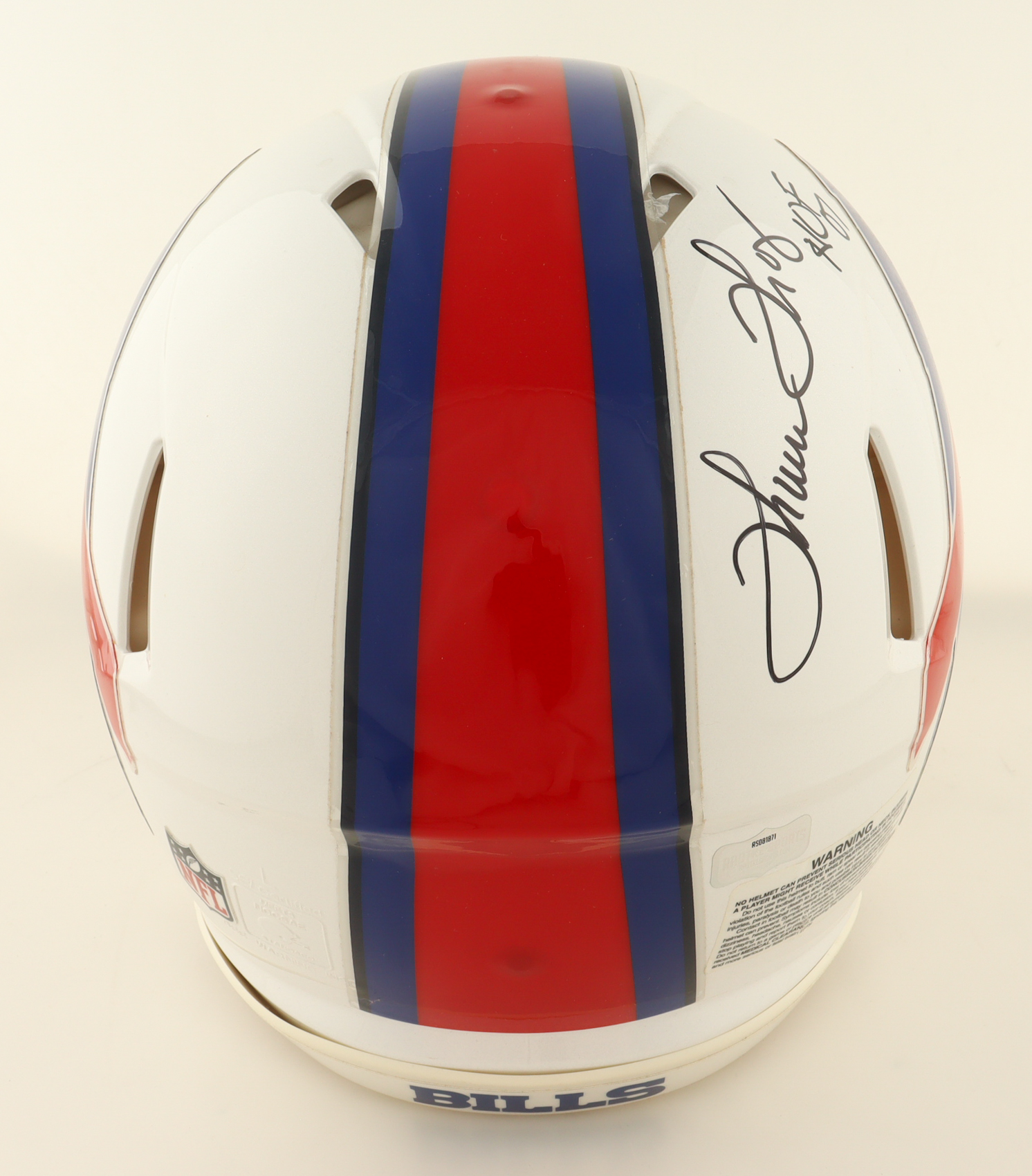 Riddell Buffalo Bills full-size authentic on-field speed helmet. Hand-signed and inscribed by Thurman Thomas (HOF).