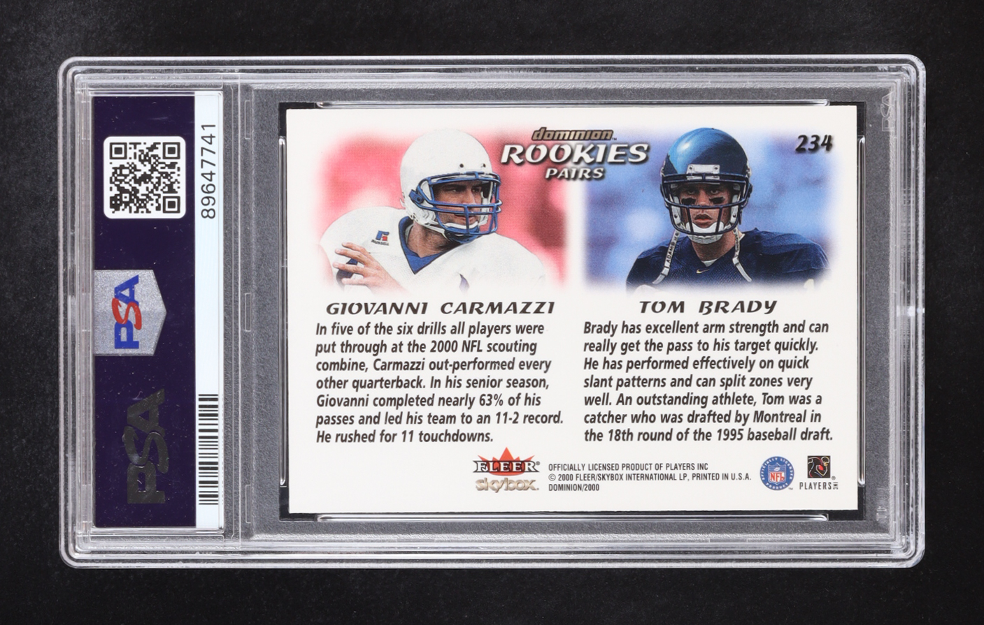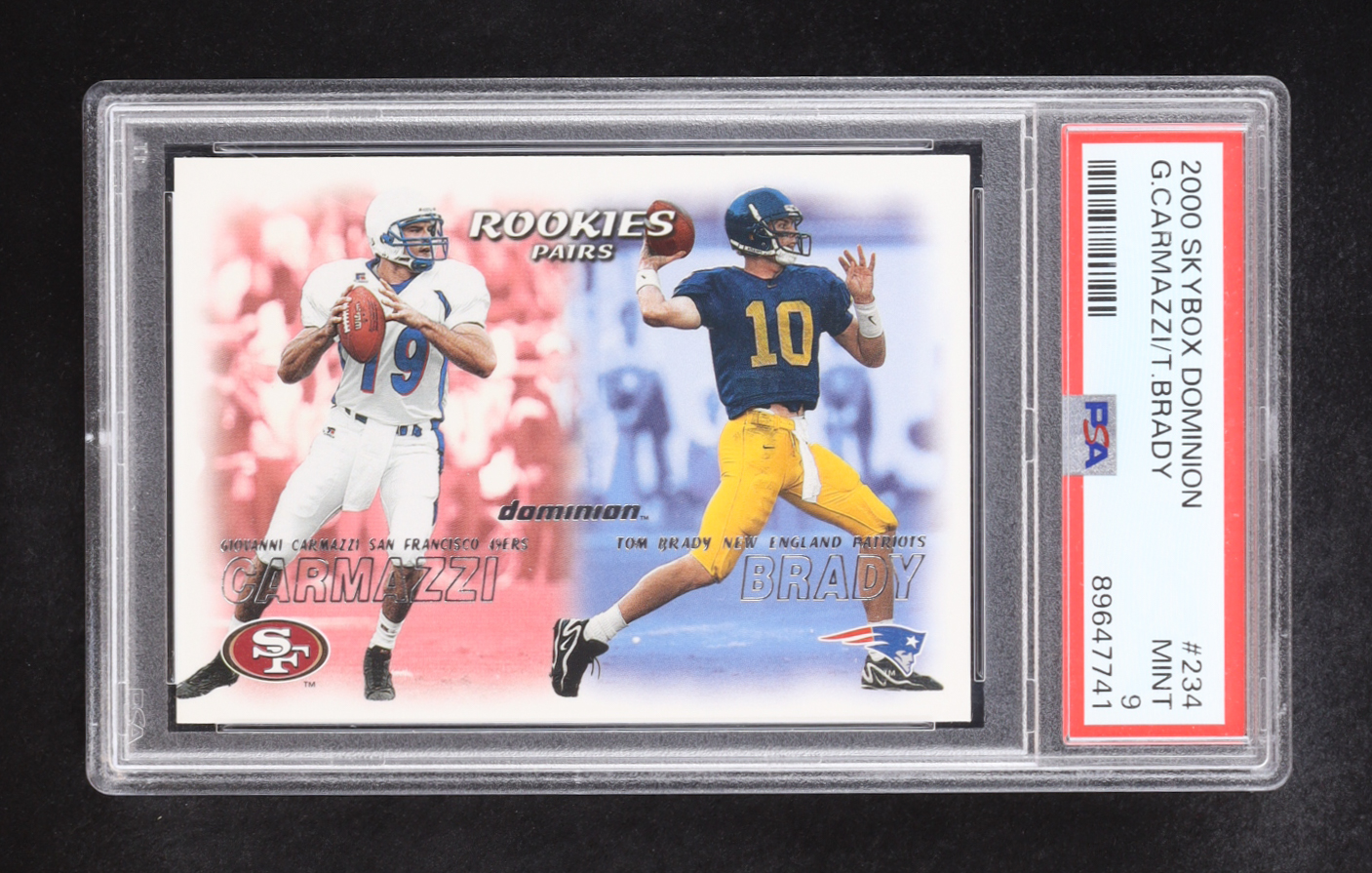 Tom Brady / Giovanni Carmazzi 2000 Skybox Dominion Rookies Pairs #234 RC (PSA 9)