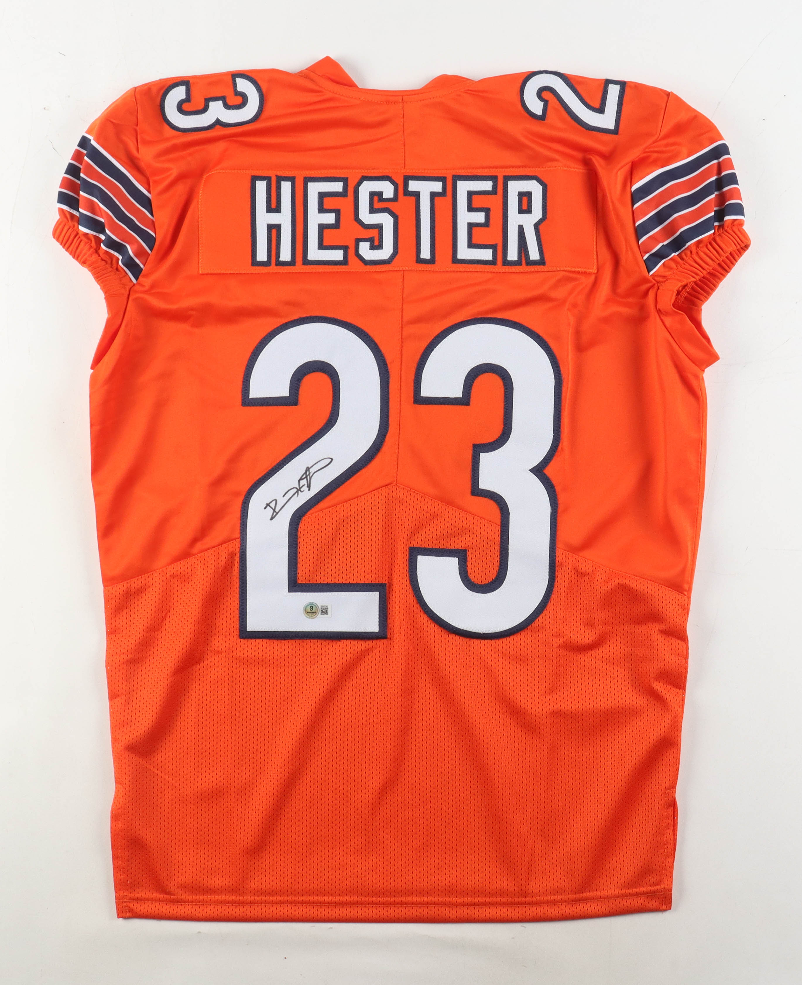 Custom jersey with everything sewn on, size XL. Hand-signed by Devin Hester (HOF).