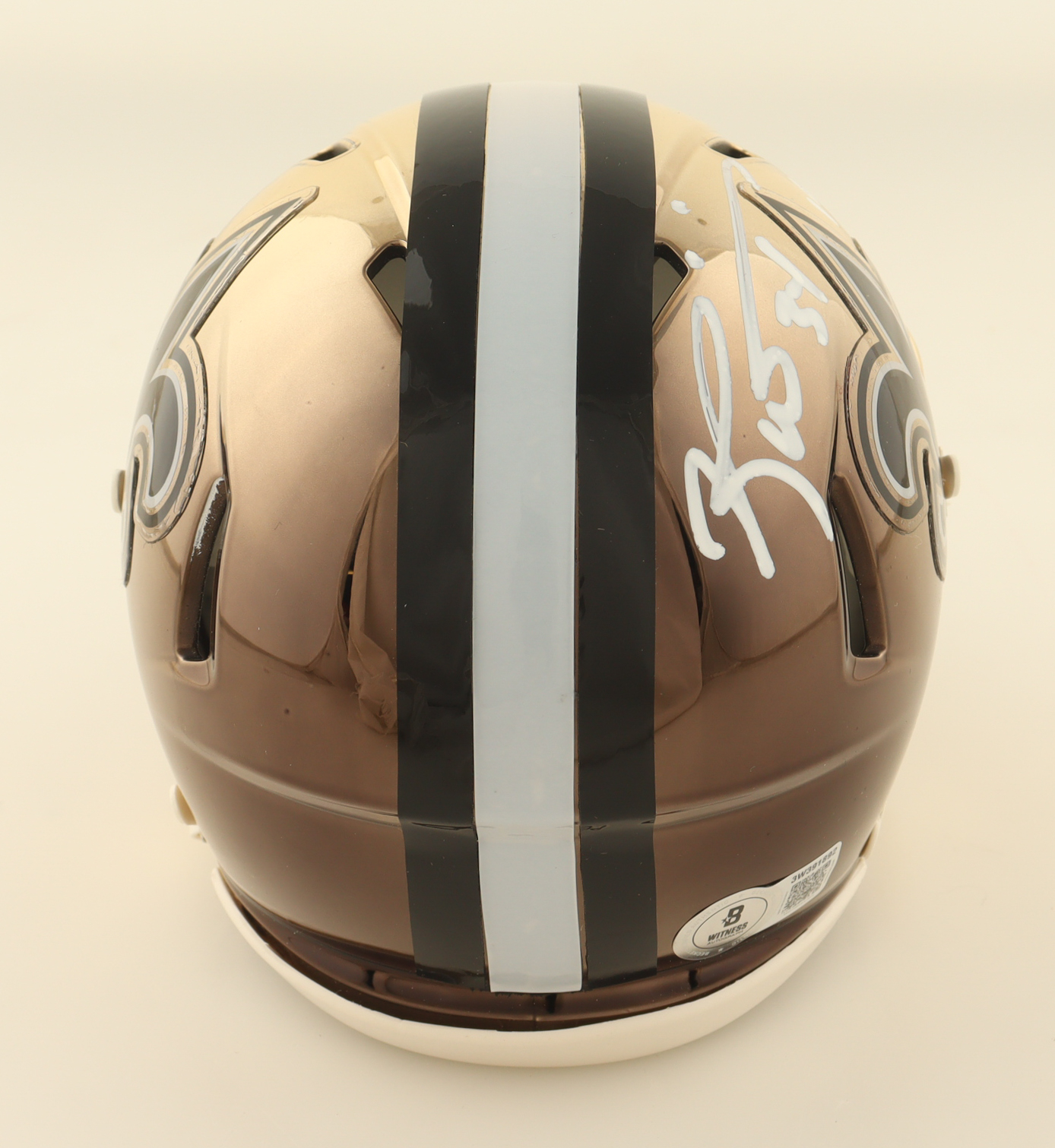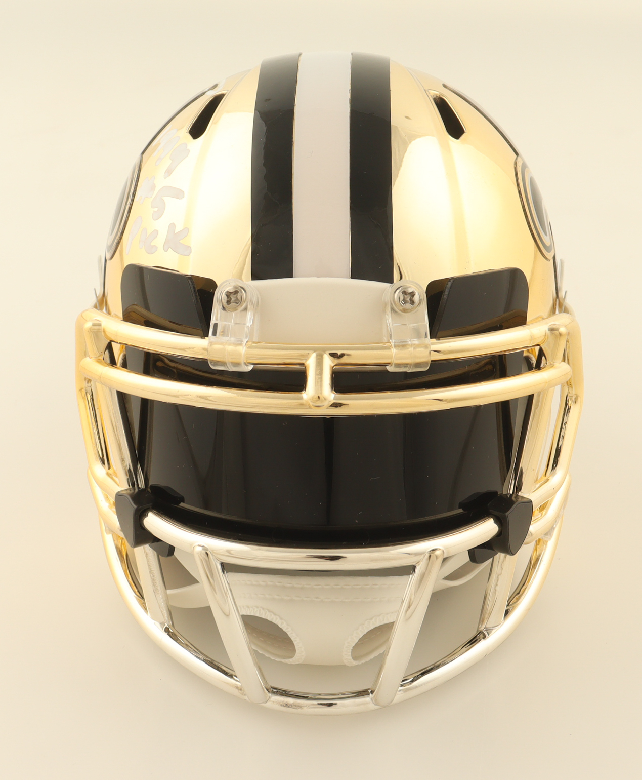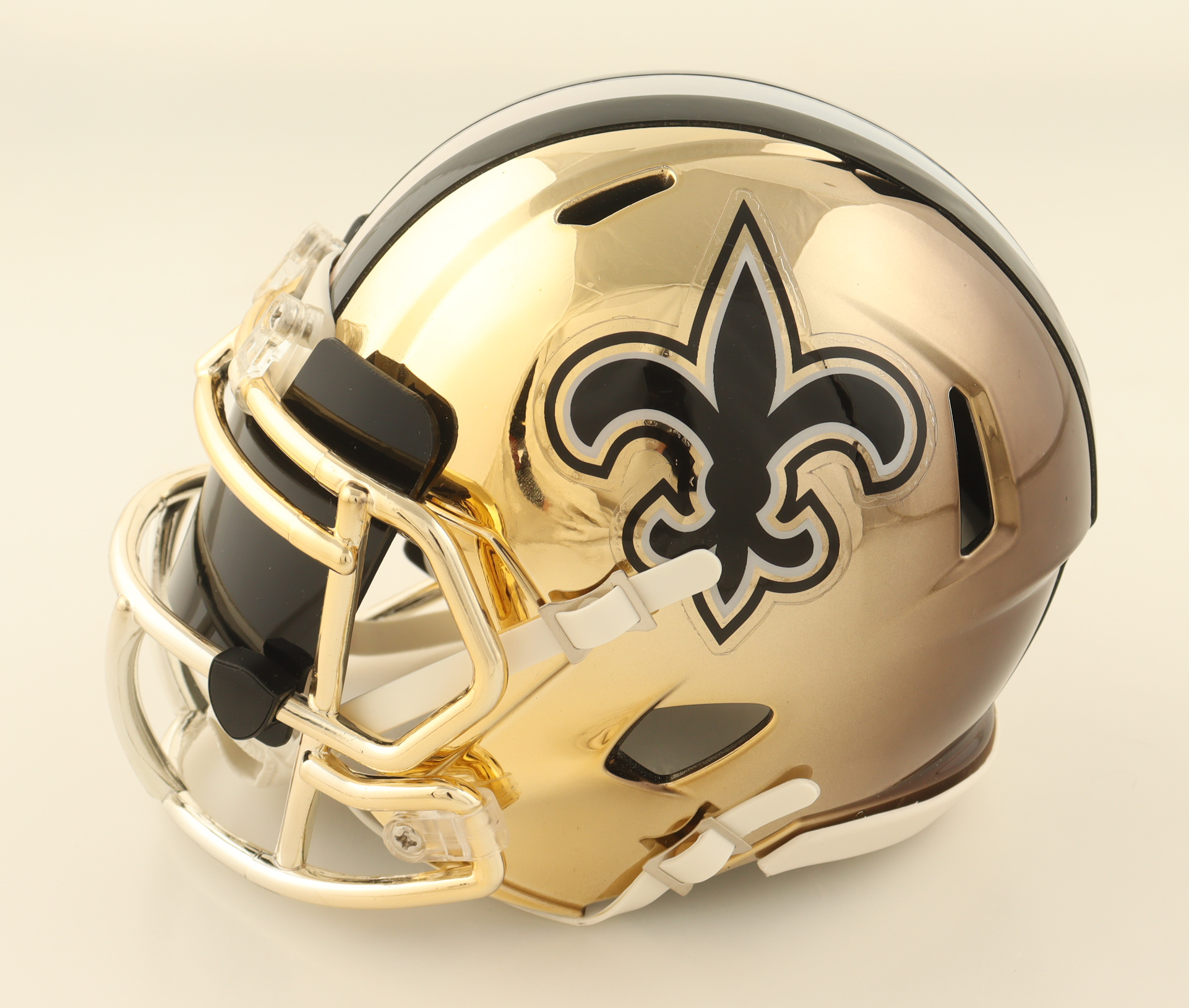 Riddell New Orleans Saints chrome alternate speed mini helmet with custom visor. Hand-signed by Ricky Williams.