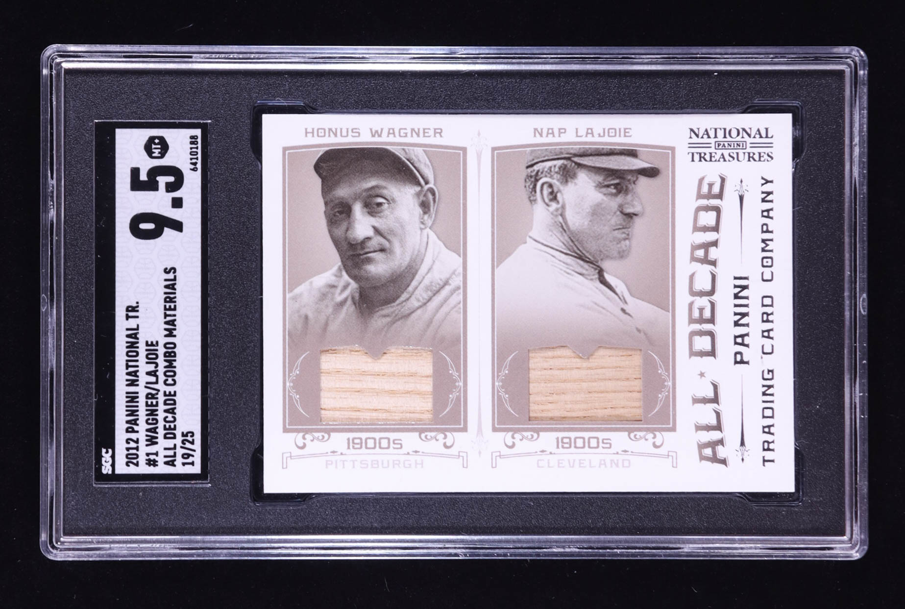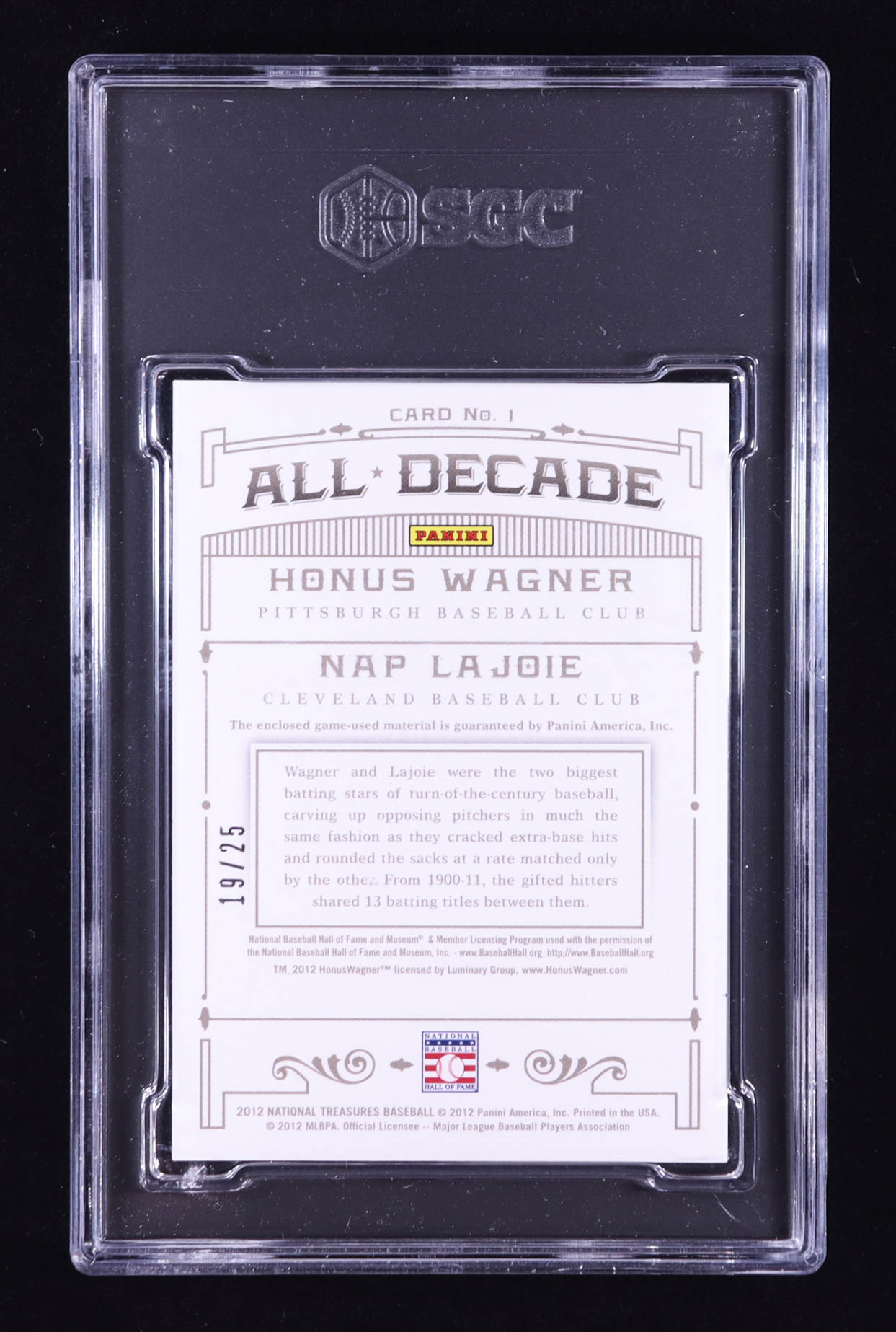 Honus Wagner / Nap Lajoie 2012 Panini National Treasures All Decade Combo Materials #1 #19/25 (SGC 9.5)