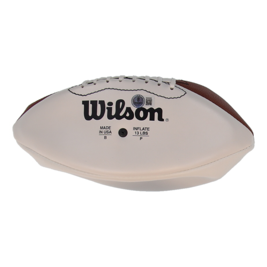 Wilson Official NFL Football. Hand-signed by Jimmy Johnson (D. 2024, San Francisco 49ers, HOF). Please note, there are stains throughout the football and it does not hold air.