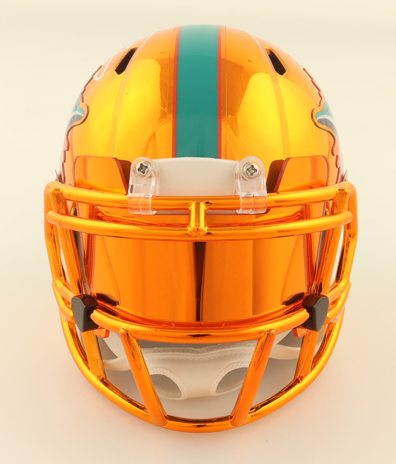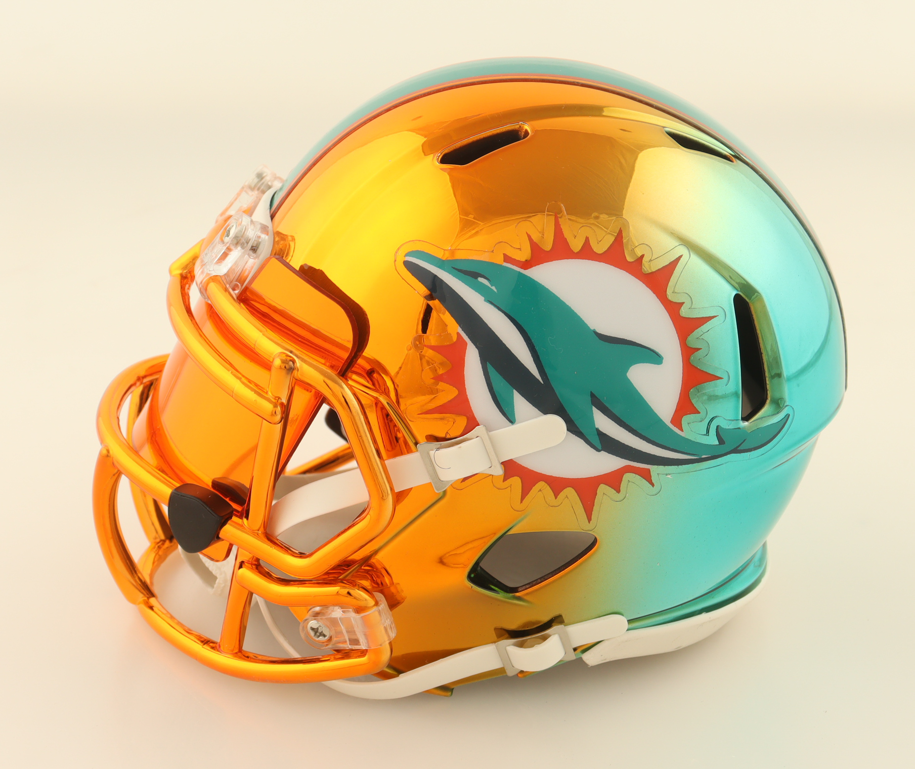 Riddell Miami Dolphins custom chrome alternate speed mini helmet with custom visor. Hand-signed by Tyreek Hill.