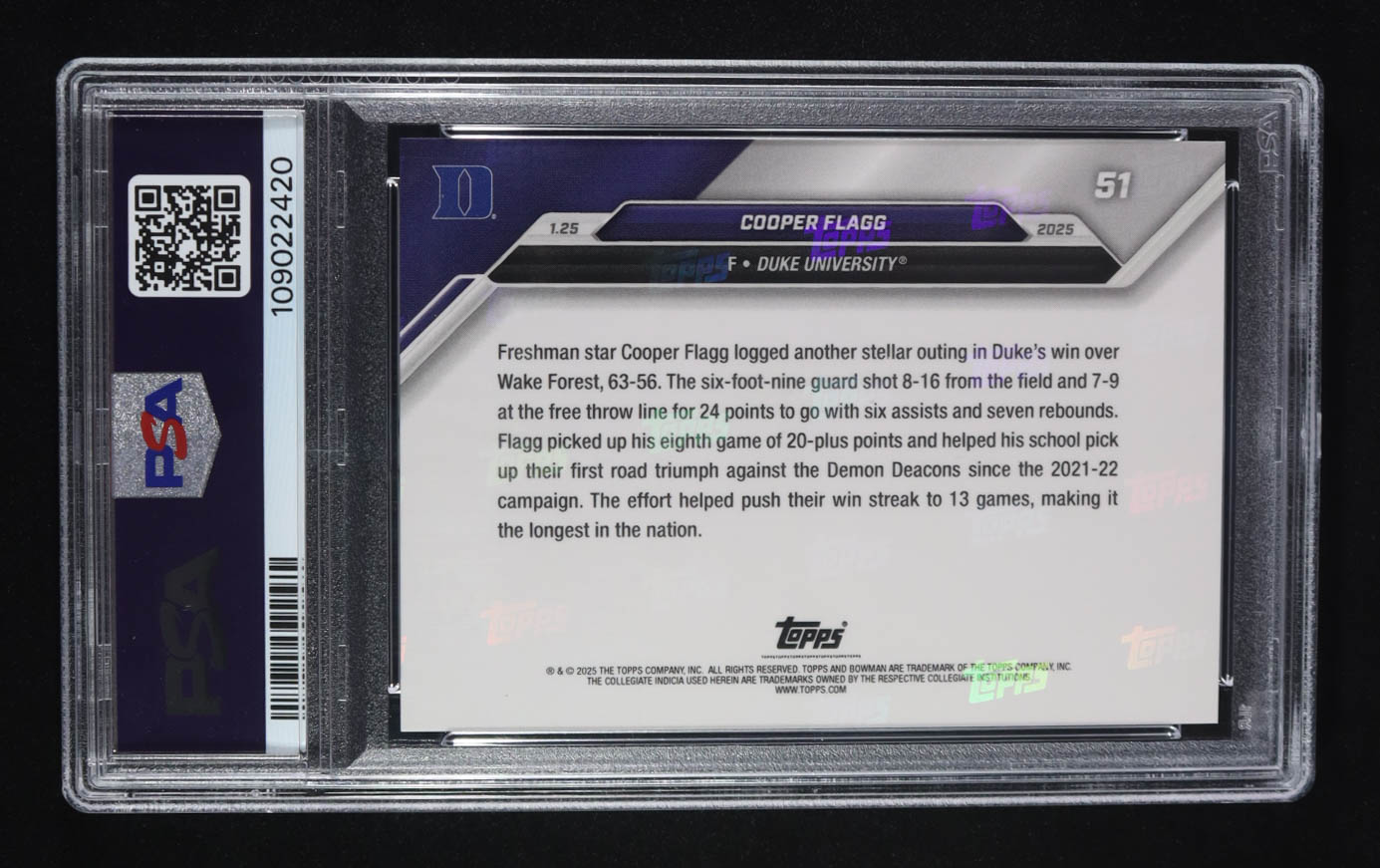 Cooper Flagg 2024 Bowman U Now #51 RC (PSA 10)
