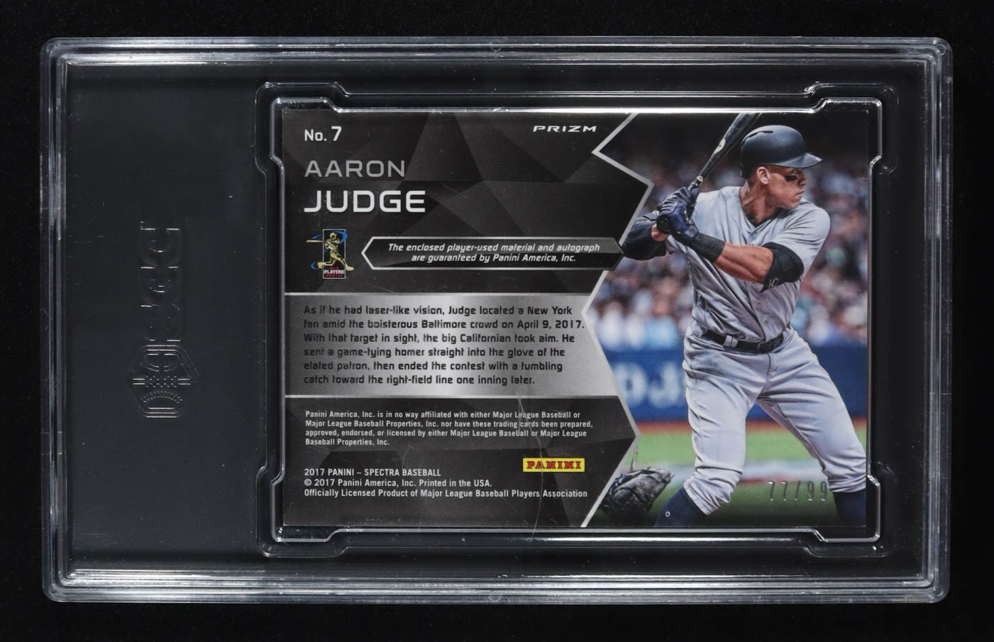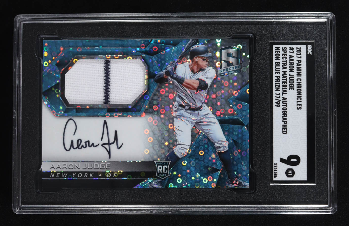Aaron Judge 2017 Panini Chronicles Spectra Material Autographed Neon Blue Prizm #7 RC 77/99 (SGC 9 |Autograph Graded SGC 10)