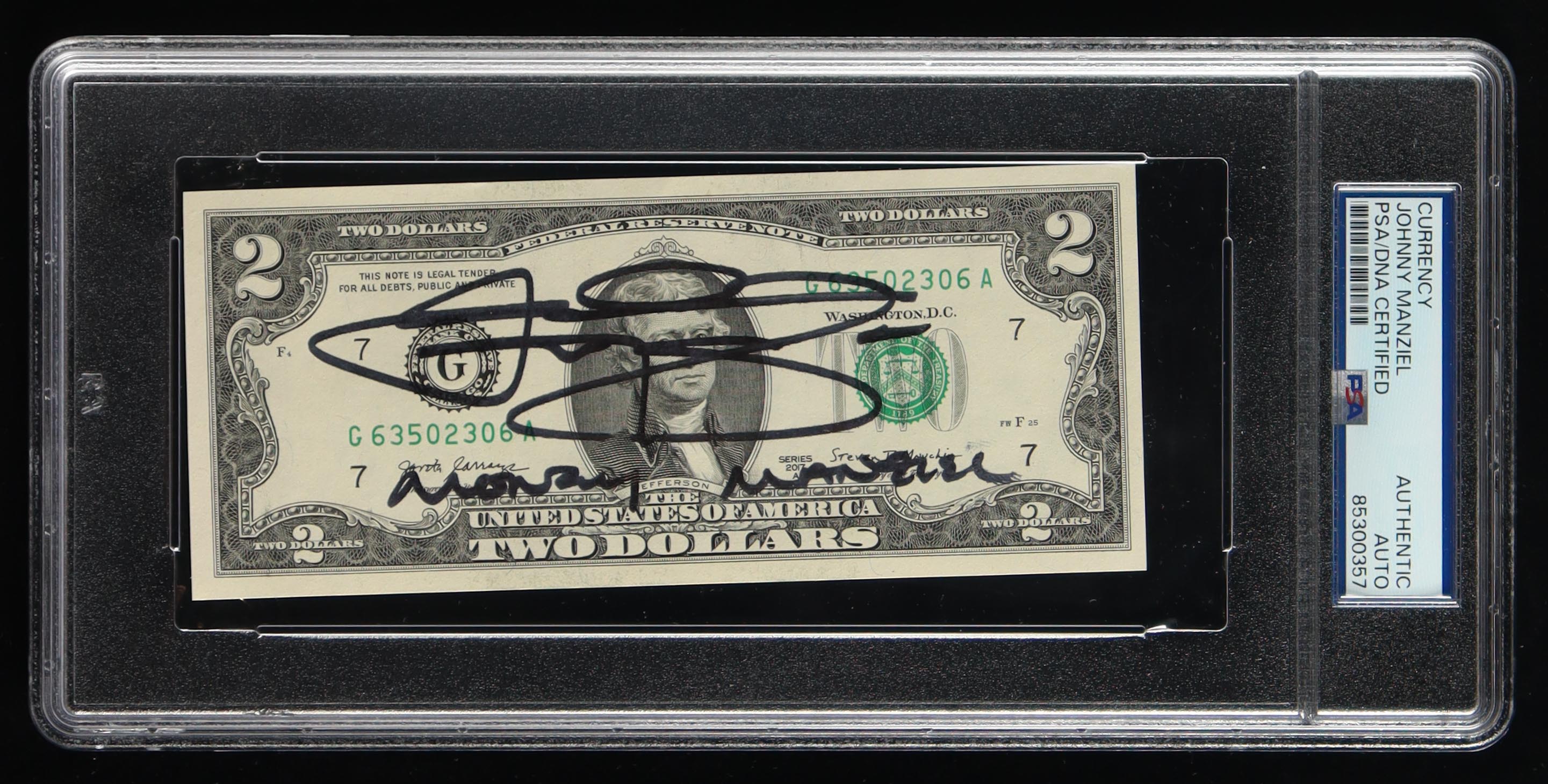 Johnny Manziel Signed $2 Two Dollar U.S. Currency Inscribed "Money Manziel" (PSA)