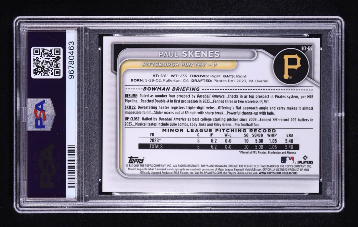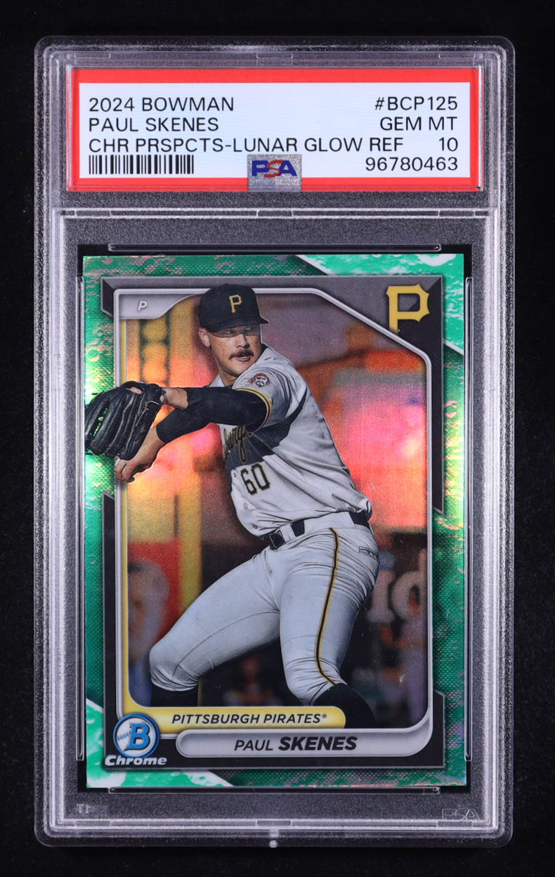 Paul Skenes 2024 Bowman Chrome Prospects Lunar Glow Refractor #BCP125 RC (PSA 10)