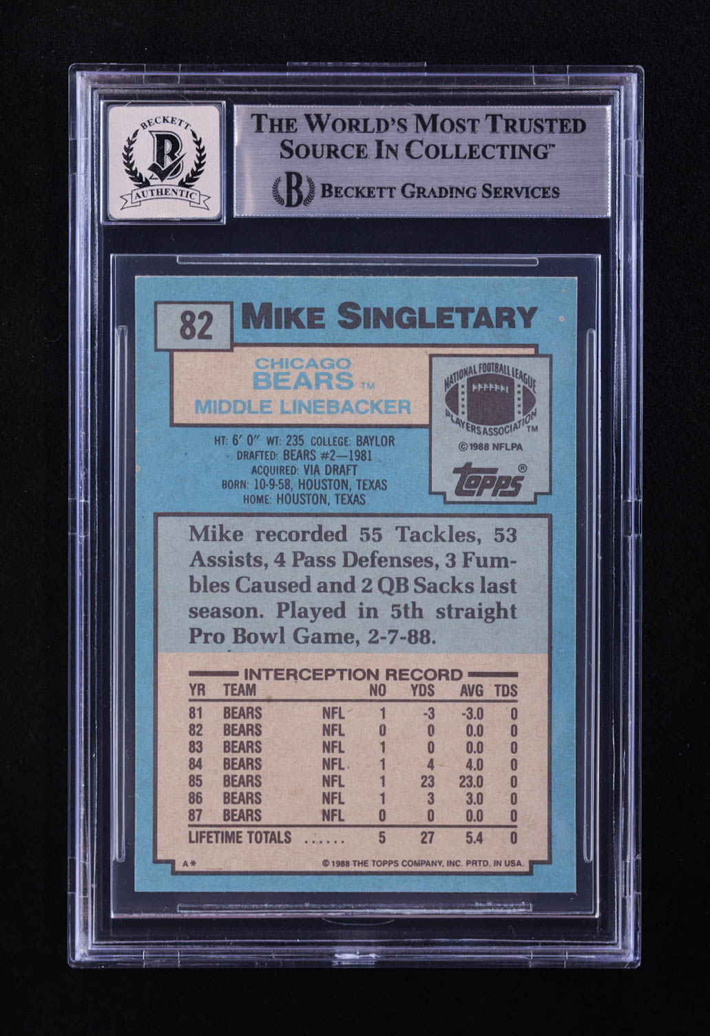 Mike Singletary Signed 1988 Topps #82 (BGS | Auto 10)