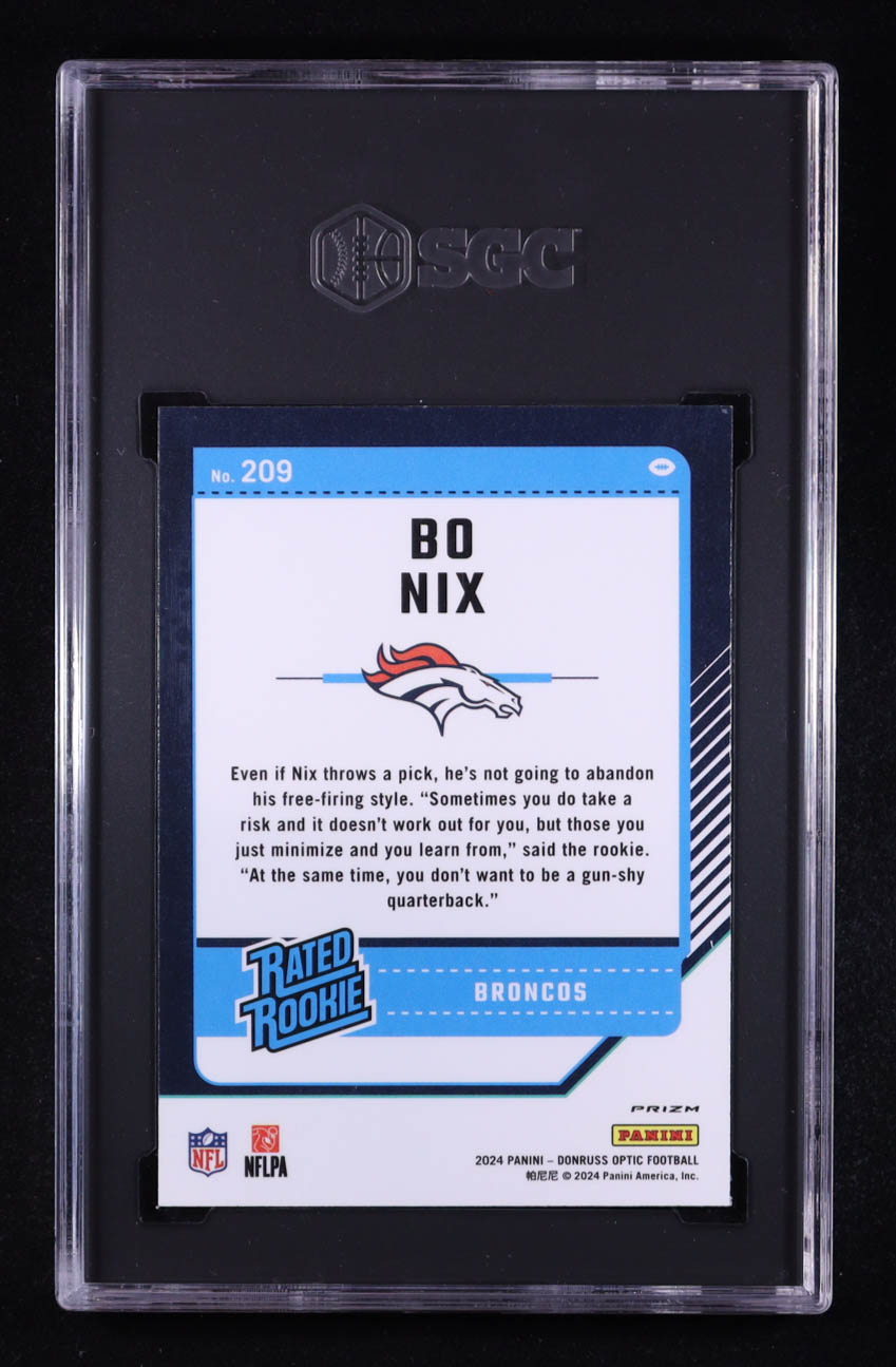 Bo Nix 2024 Donruss Optic Holo Prizm #209 RC (SGC 10)