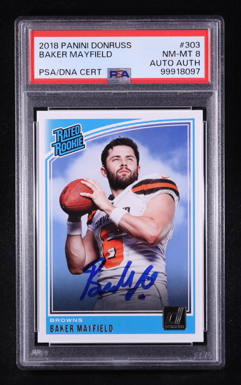 Baker Mayfield Signed 2018 Donruss #303 RR RC (PSA 8)