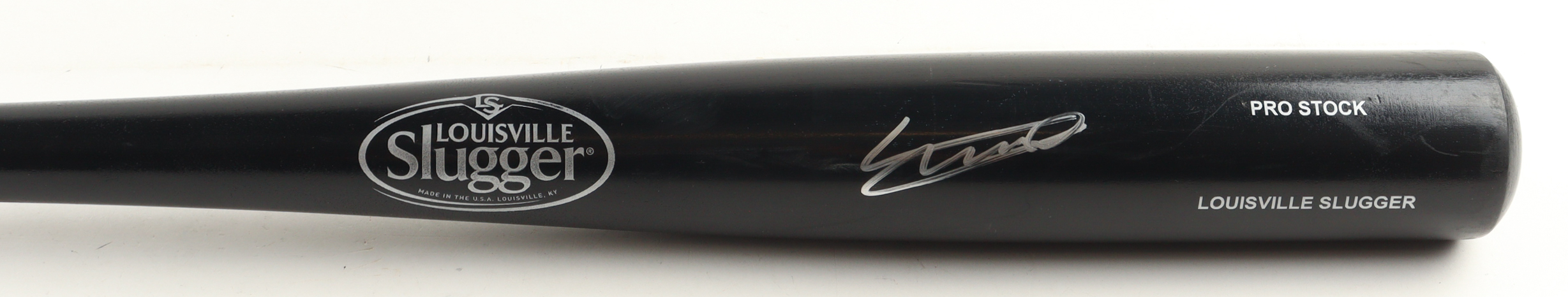 Louisville Slugger Pro Stock Baseball Bat. Hand-signed by Vladimir Guerrero Jr. (Toronto Blue Jays). Please note, there is scuffing throughout the baseball bat.