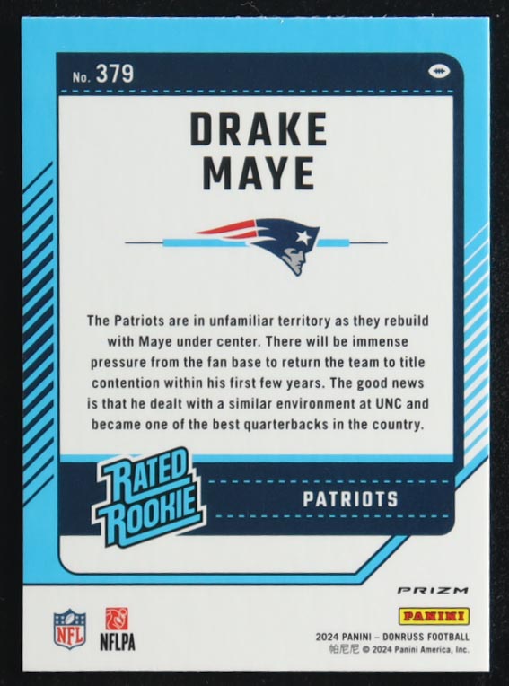 Drake Maye 2024 Panini Donruss Optic Rated Rookie Red Pandora Prizm #379 RC