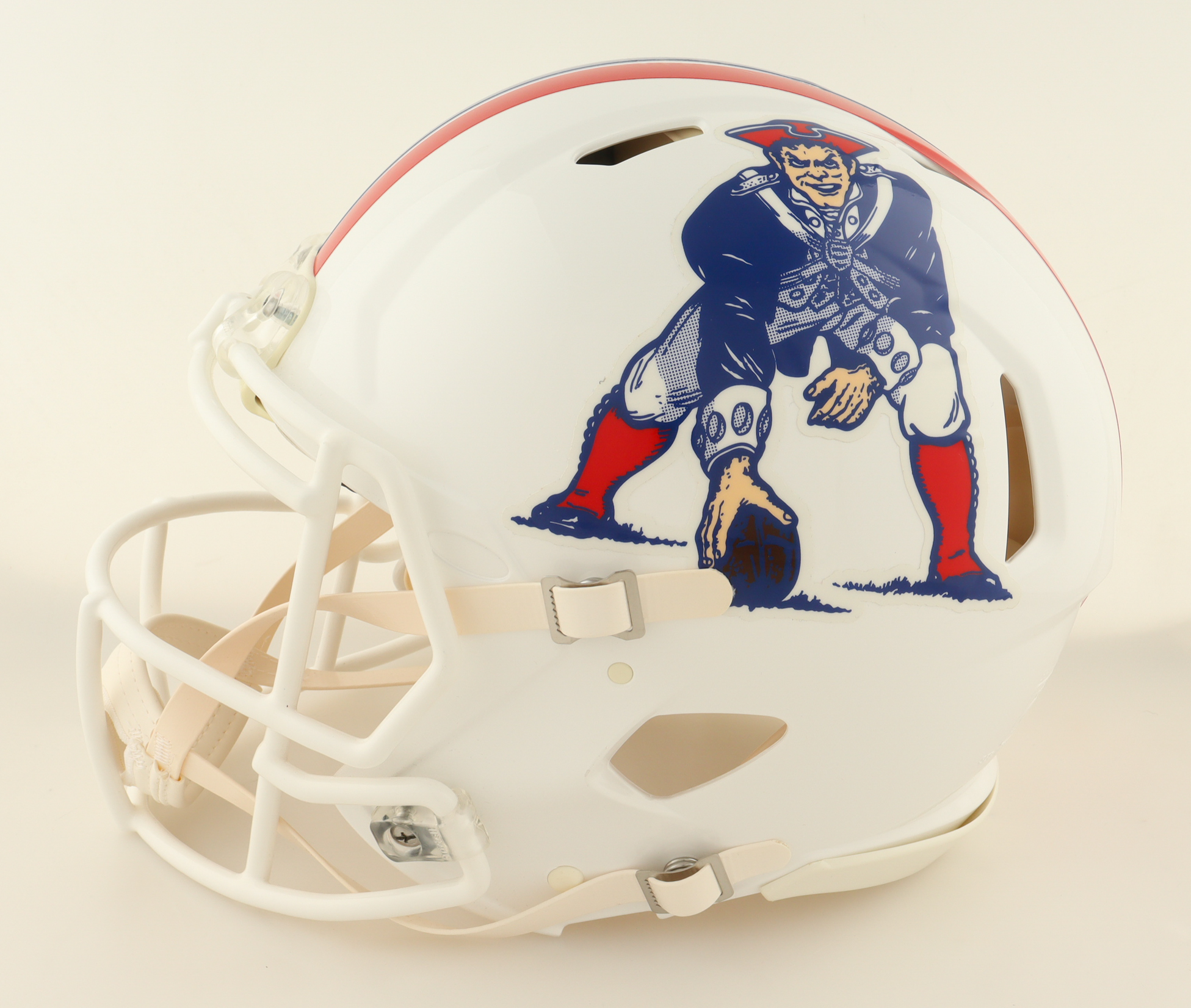 Riddell New England Patriots Full-Size Authentic On-Field Throwback Speed Helmet. Hand-signed by Damian Harris.
