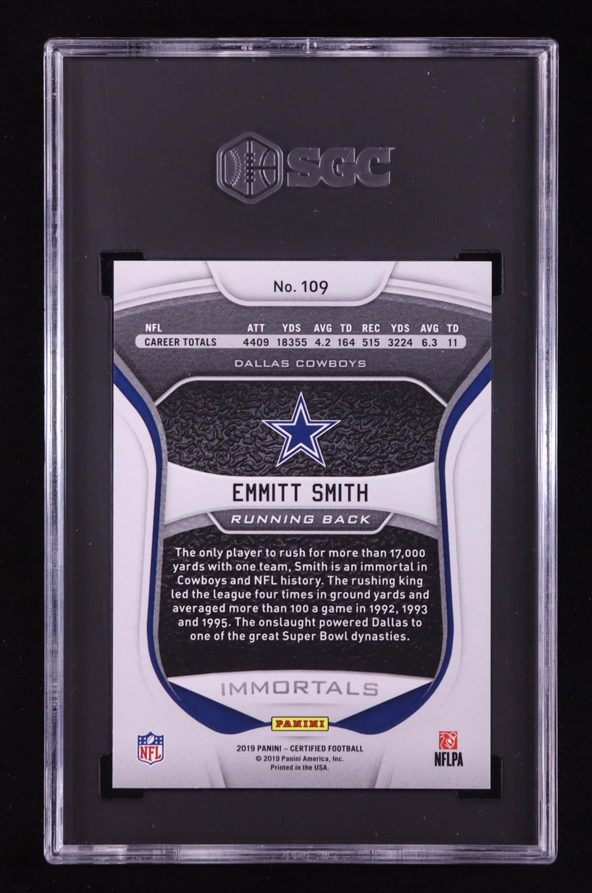 Emmitt Smith 2019 Certified Mirror Red #109 #96/99 (SGC 9)