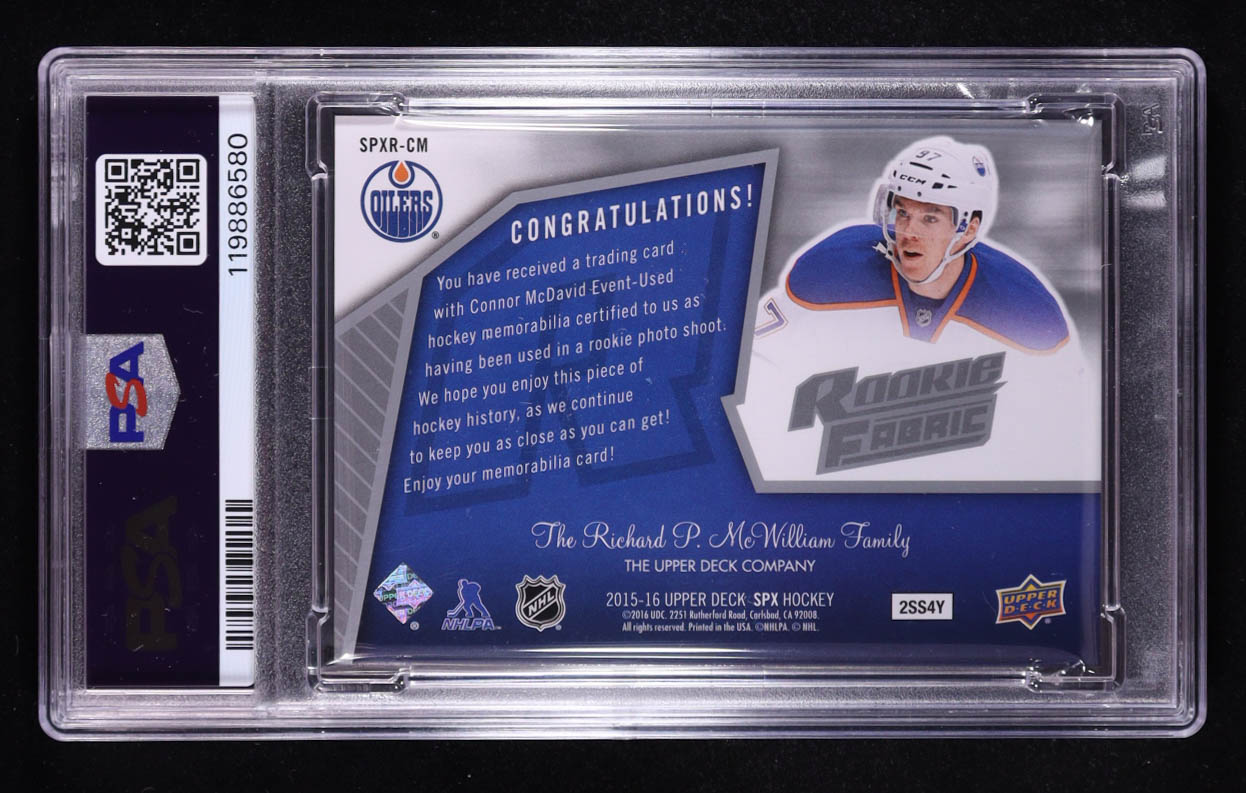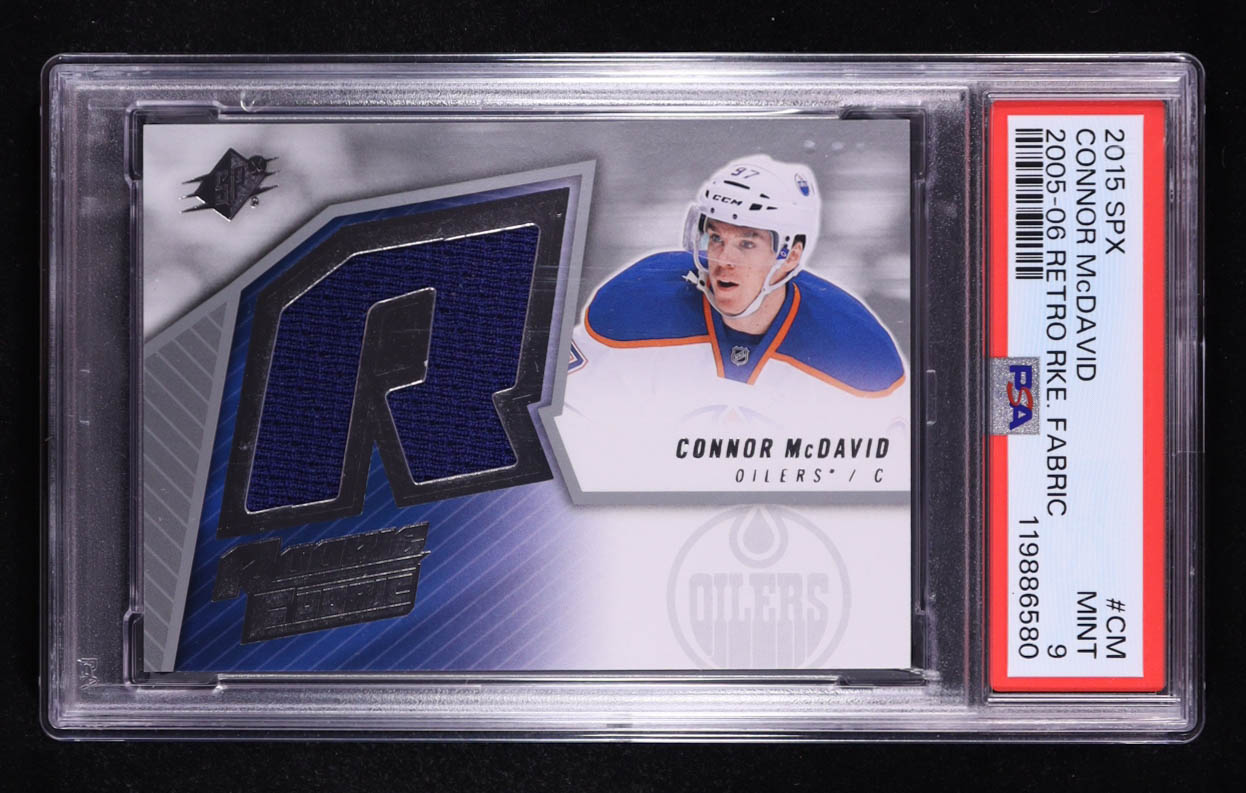 Connor McDavid 2015-16 SPx '05-06 Retro Rookie Jerseys #SPXR-CM B RC (PSA 9)