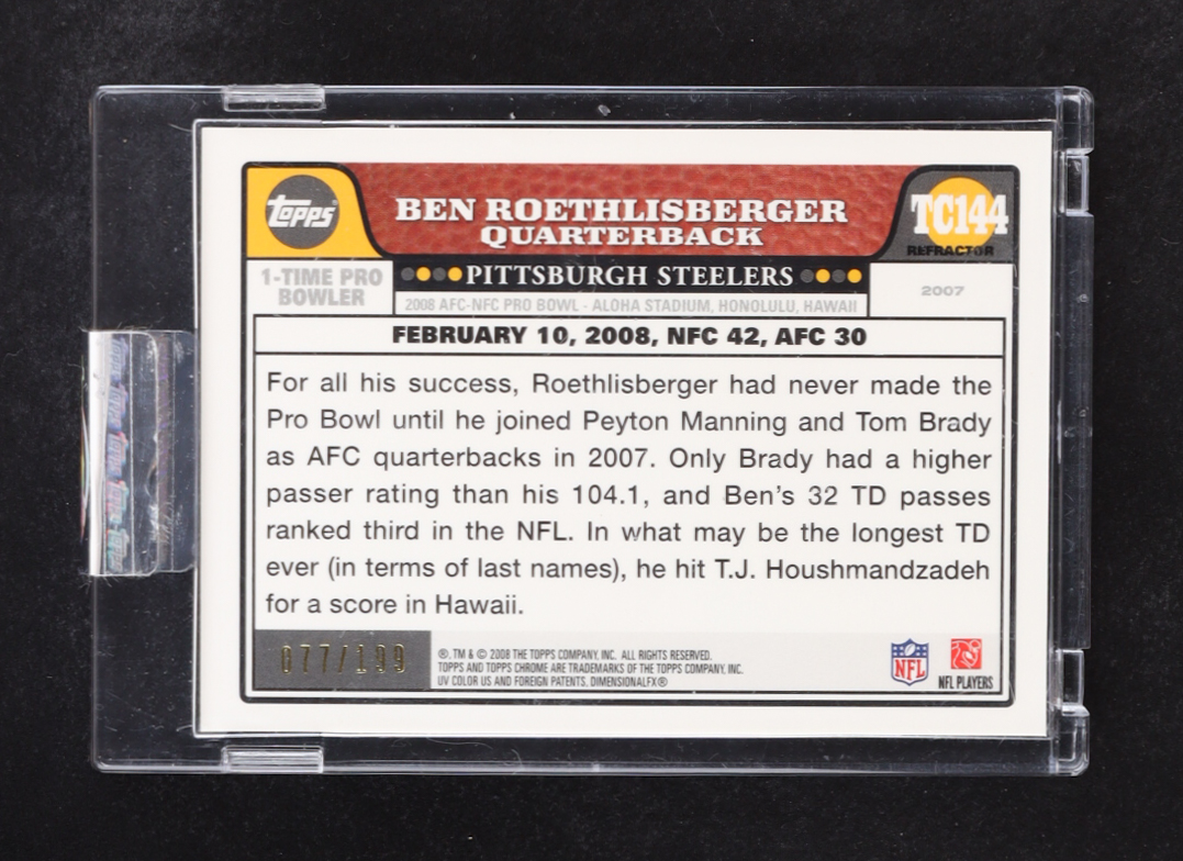 Ben Roethlisberger 2008 Topps Chrome Gold Refractors AP #TC144 #77/199