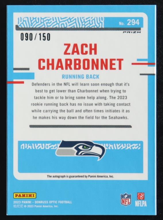 Zach Charbonnet 2023 Donruss Optic RR Autographs Holo #294 #90/150