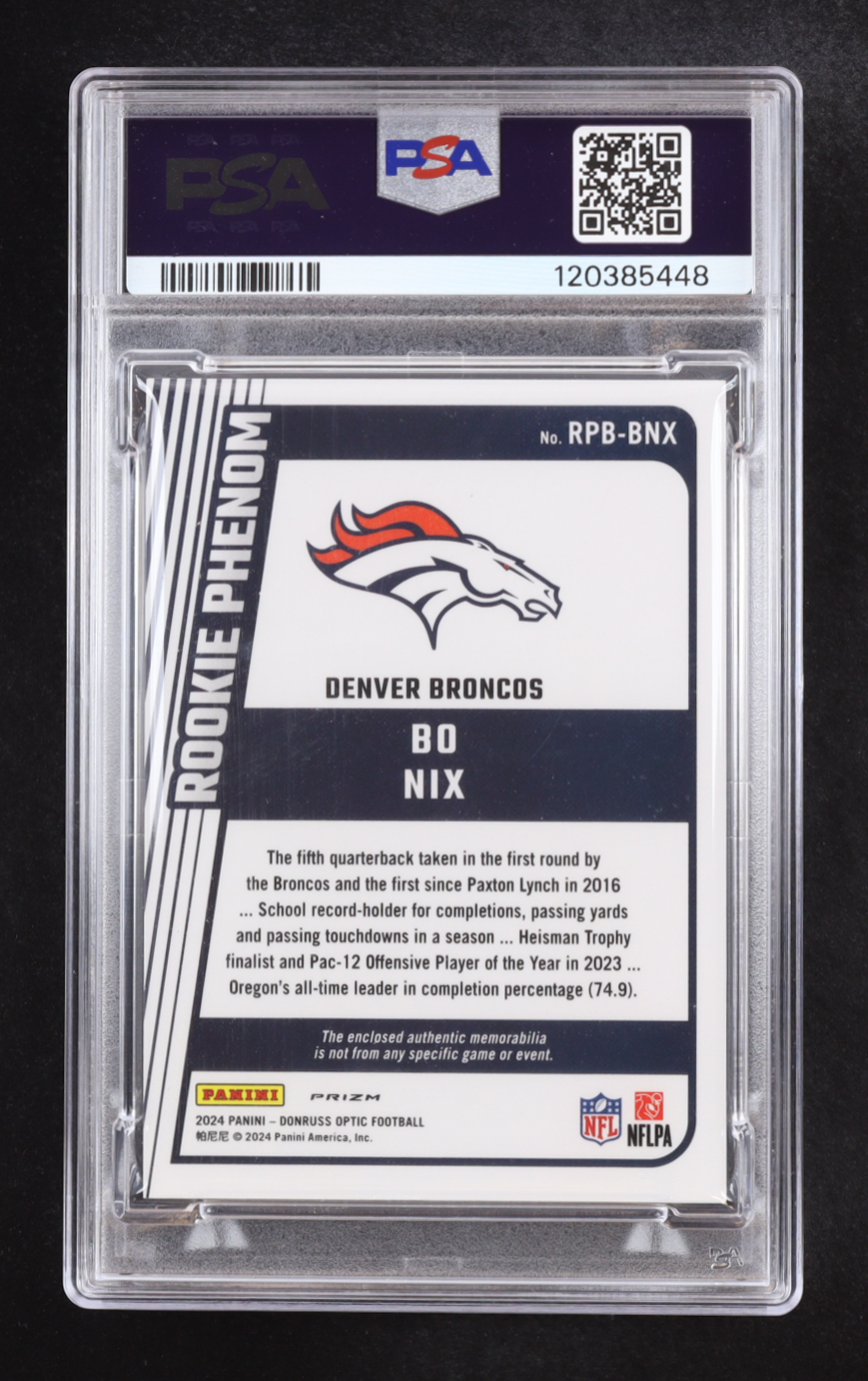 Bo Nix 2024 Donruss Optic Rookie Phenoms Blue Hyper #5 RC (PSA 8)