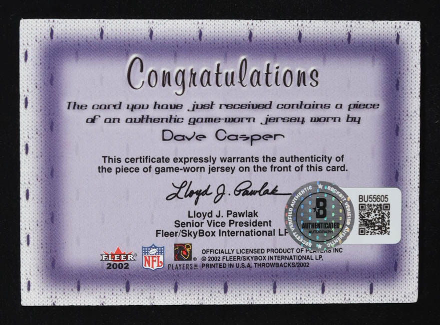 Dave Casper Signed 2002 Fleer Throwbacks Classic Clippings #3 Inscribed "HOF 02" (Beckett)