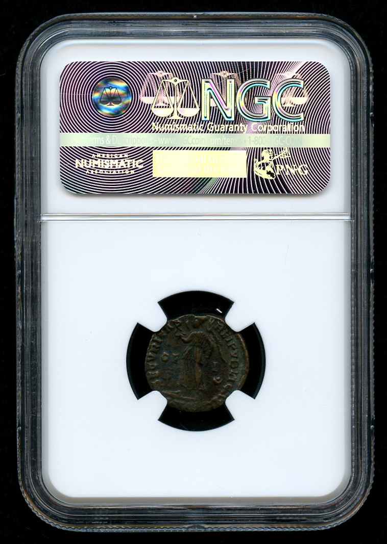Very rare authentic ancient Roman empire coin. The coin has been authenticated and encapsulated by NGC (Numismatic Guaranty Corporation).