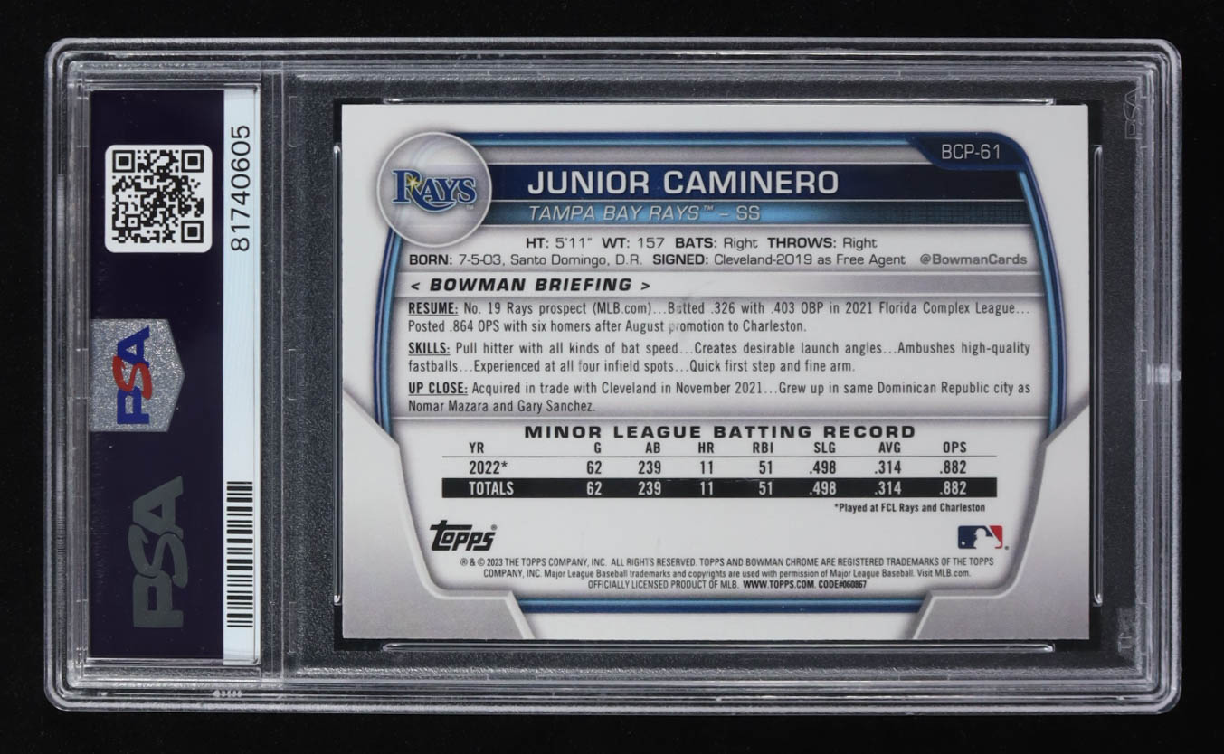 Junior Caminero 2023 Bowman Chrome Mega Box Prospects #BCP61 RC (PSA 10)