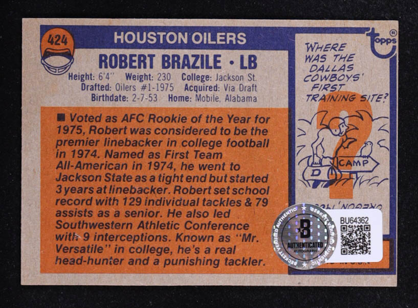 Robert Brazile Signed 1976 Topps #424 RC Inscribed "HOF 18" (Beckett)