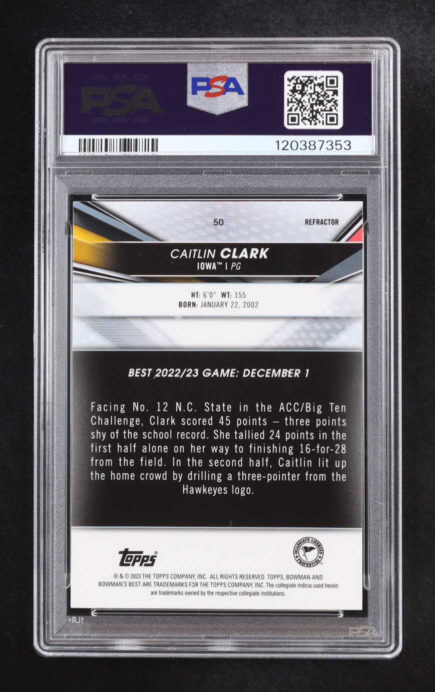 Caitlin Clark 2022 Bowman University Best Refractor #50 RC (PSA 10)