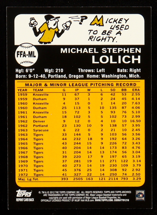 Mickey Lolich 2012 Topps Archives Autographs #ML
