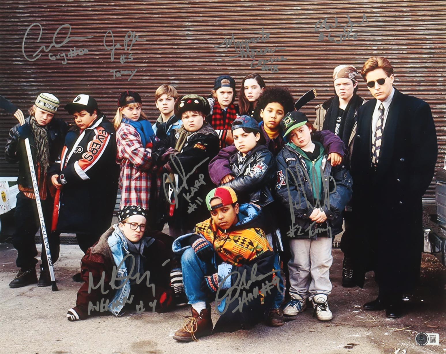 "The Mighty Ducks" 16x20 Photo Cast Signed By (8) with Brandon Adams, Matt Doherty, Aaron Schwartz, Garette Henson with Character Name Inscriptions (Beckett)