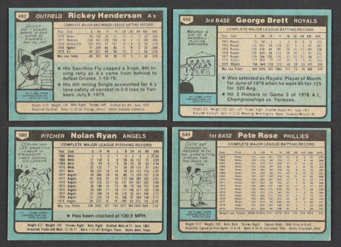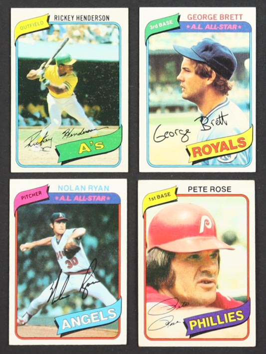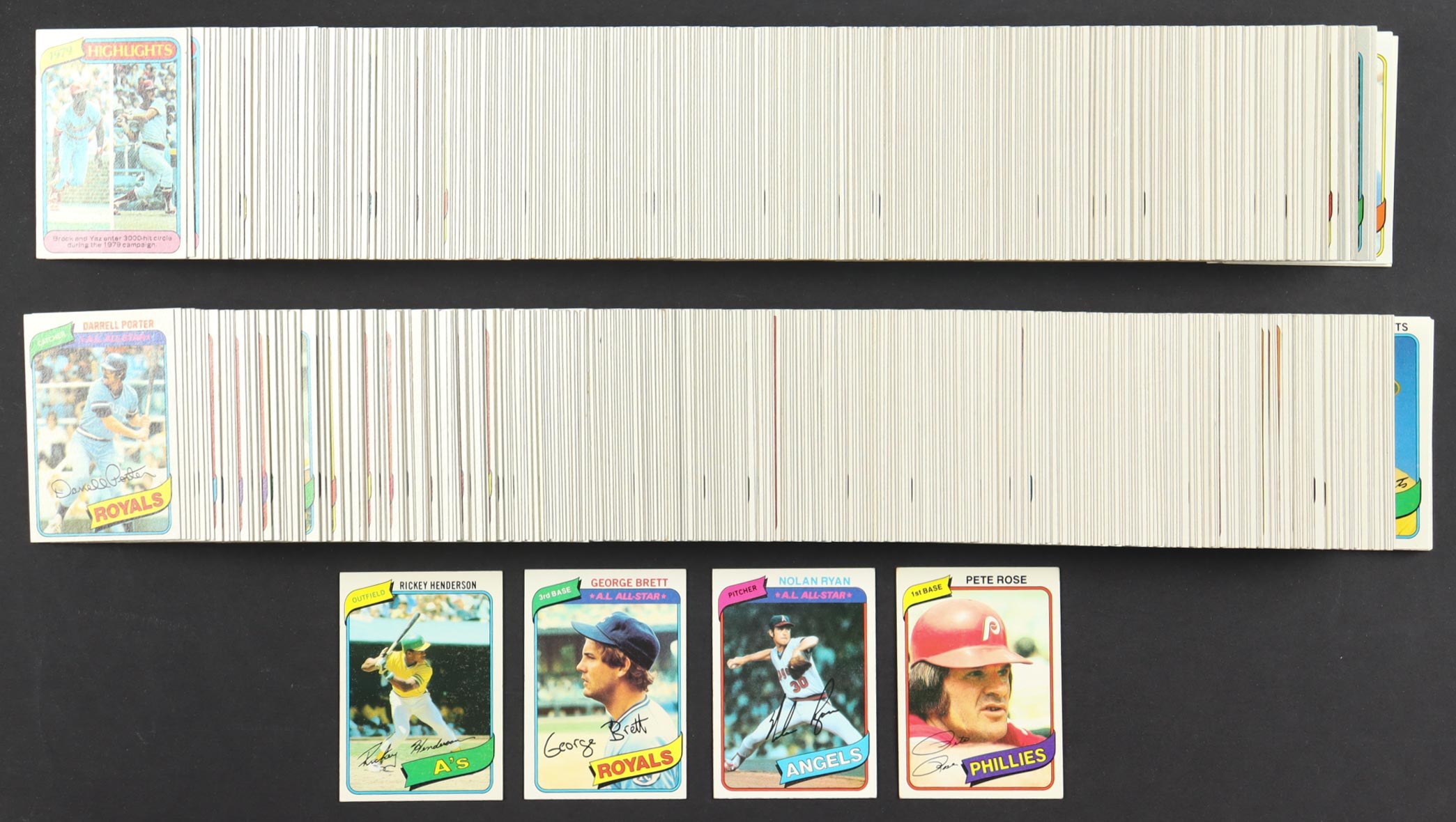 1980 Topps Baseball Complete Set of (726) Cards with Rickey Henderson #482 RC, Pete Rose #540, George Brett #450, Nolan Ryan #580