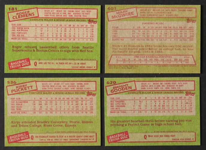 1985 Topps Baseball Complete Set of (792) Cards with Mark McGwire #401 RC, Kirby Puckett #536 RC, Roger Clemens #181 RC, Dwight Gooden #620